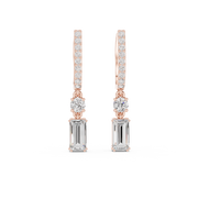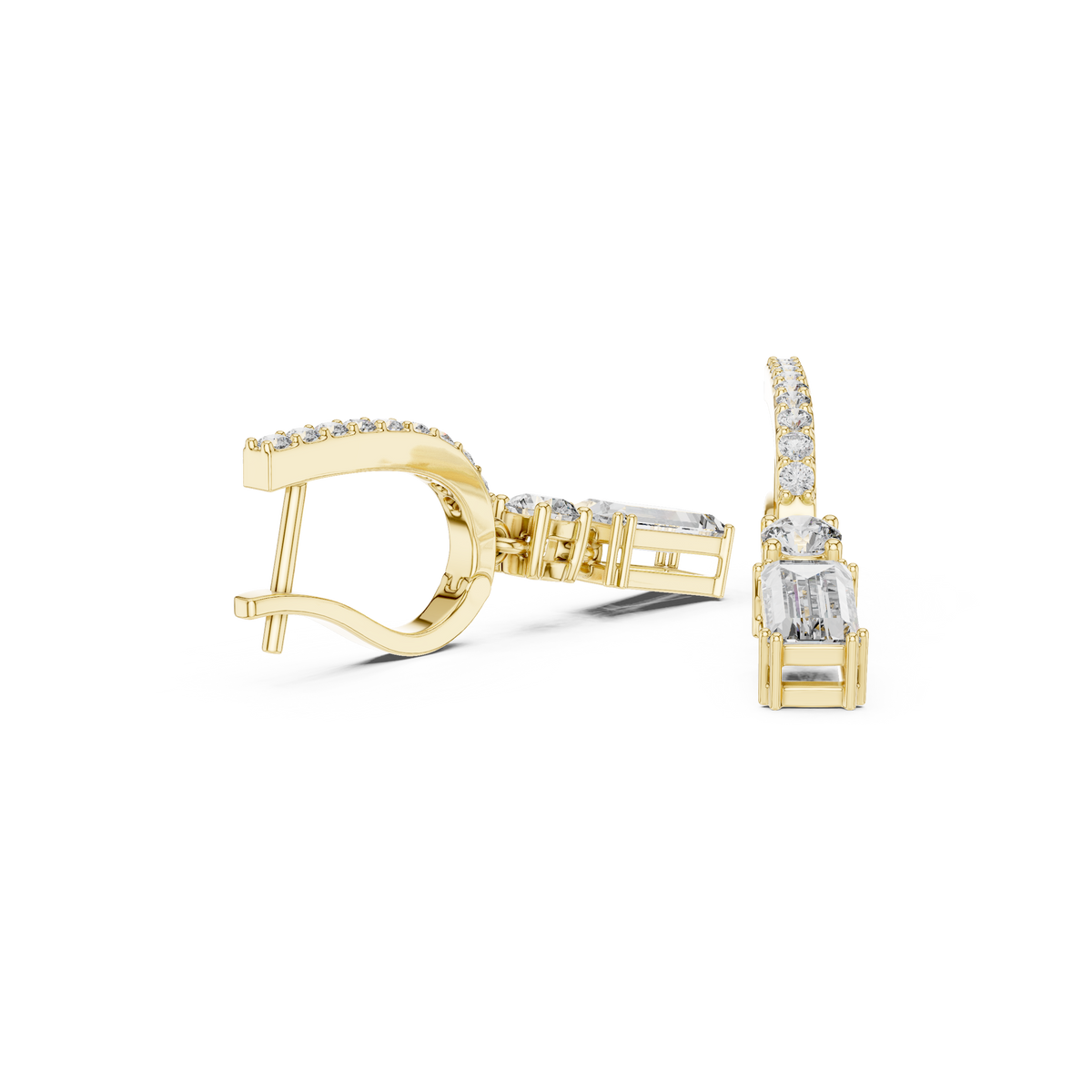 Lightweight and gracefully elongated, these earrings flatter the neckline while offering refined sparkle without excess. The combination of round brilliance and emerald cut geometry creates a striking yet wearable look, perfect for celebrations, formal events, or elevated daily style. Their timeless design ensures lasting elegance season after season.