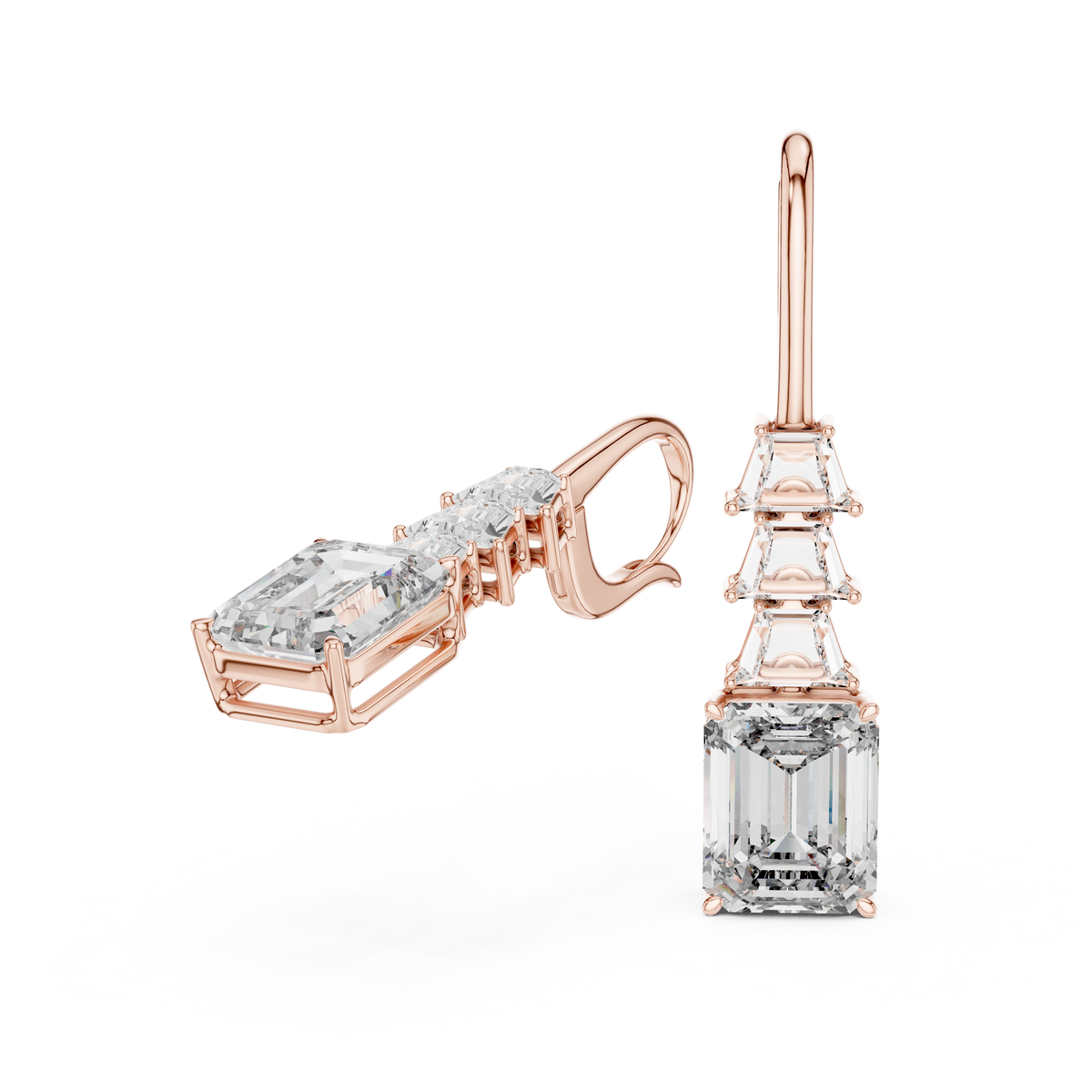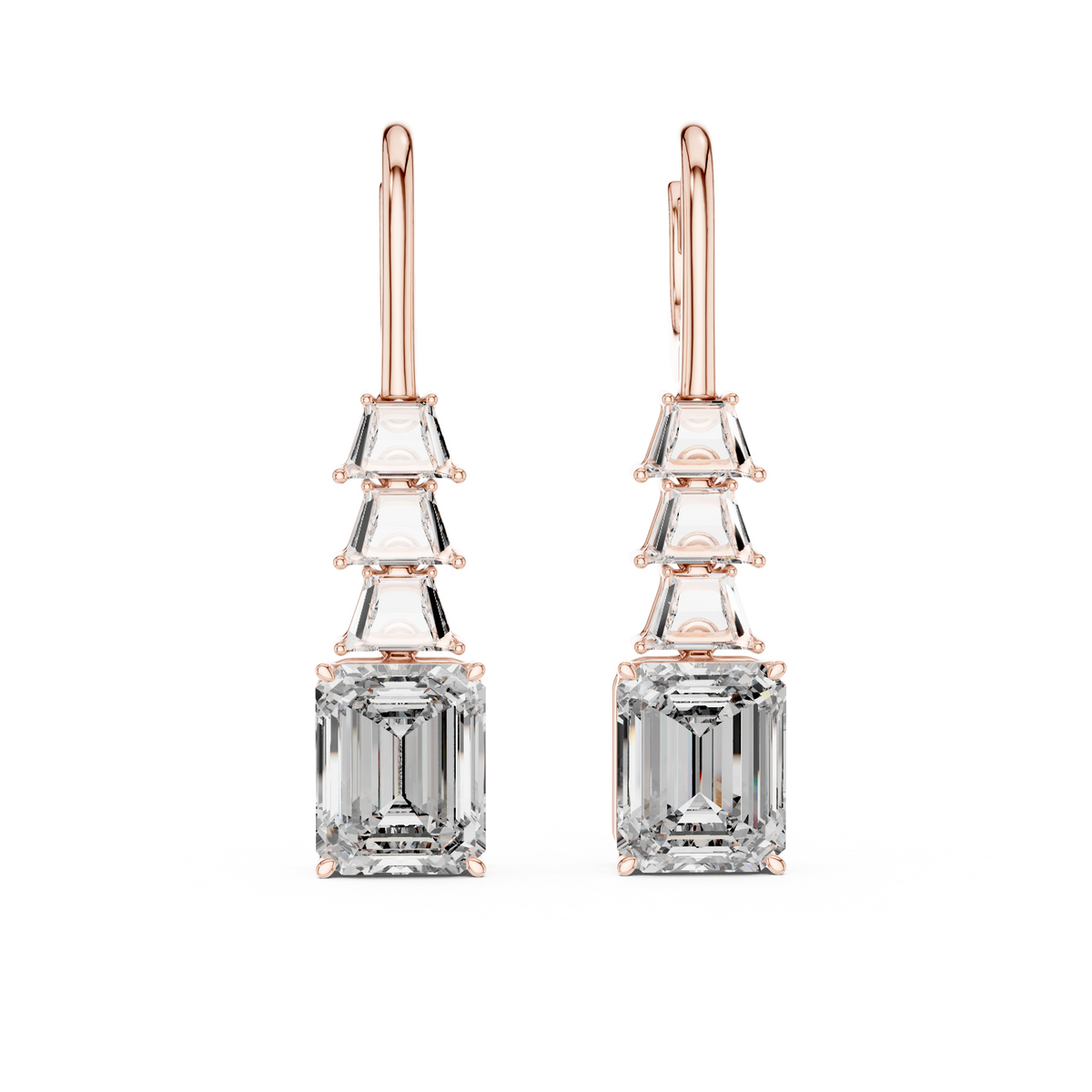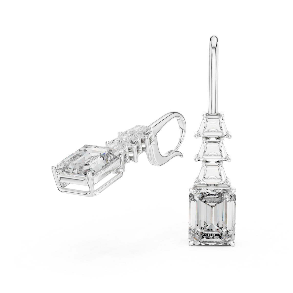 Emerald Cut Diamond Drop Earrings with Trapezoid Accents