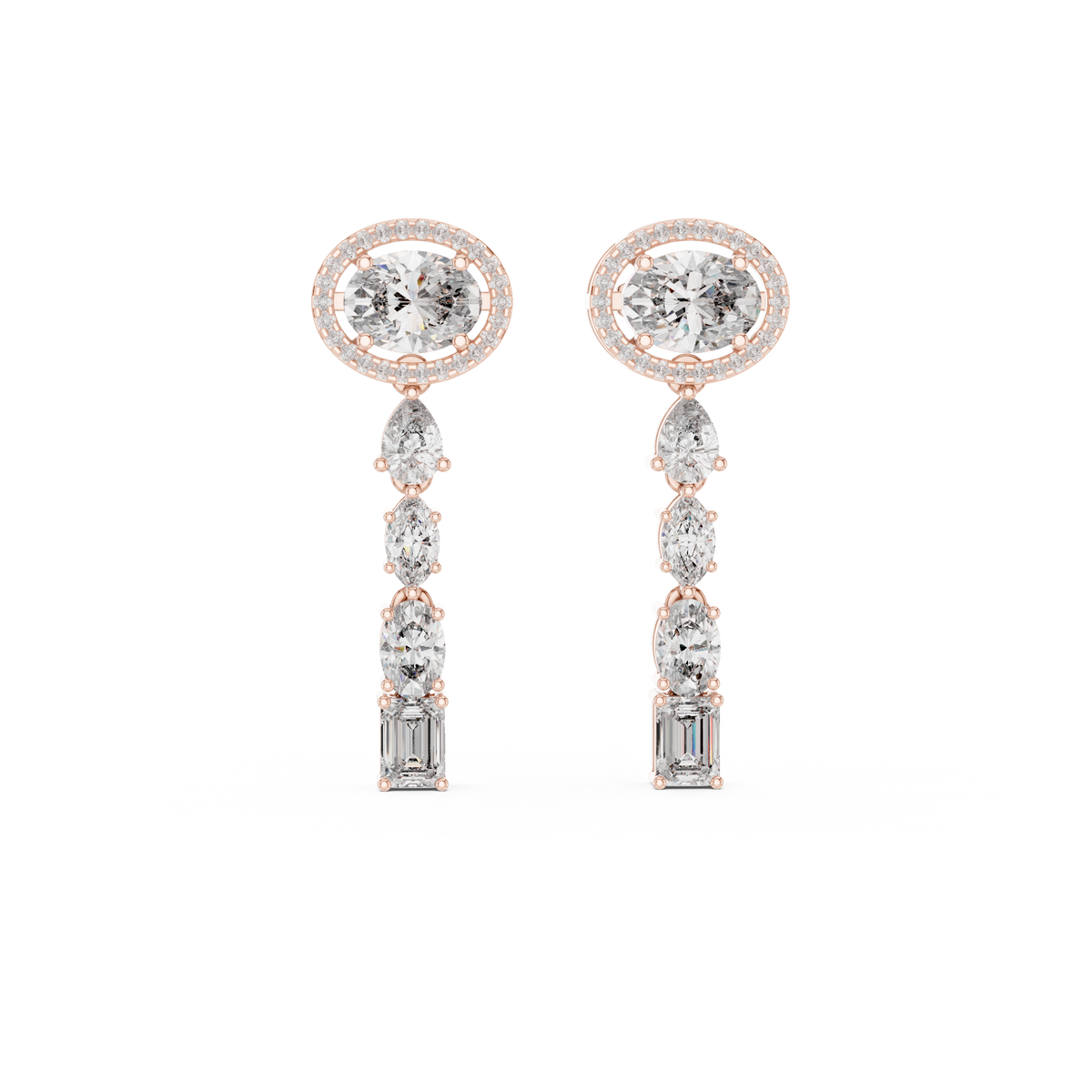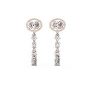 Oval Halo and Mixed Cut Diamond Linear Drop Earrings