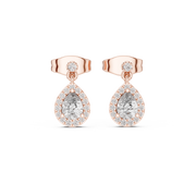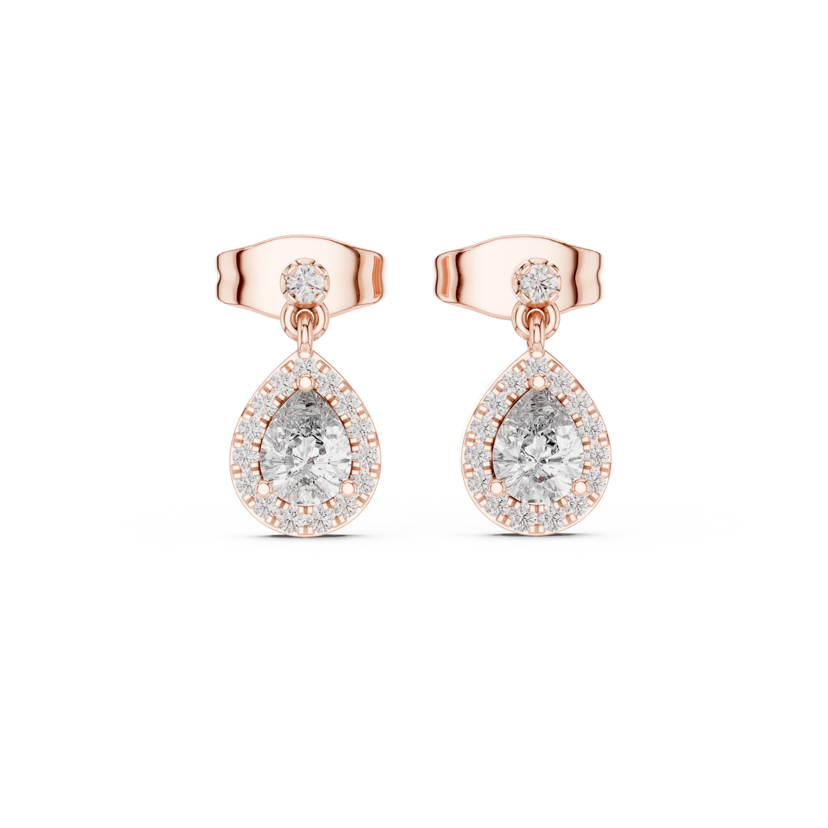 Pear Cut Diamond Halo Drop Earrings with Pavé Accents