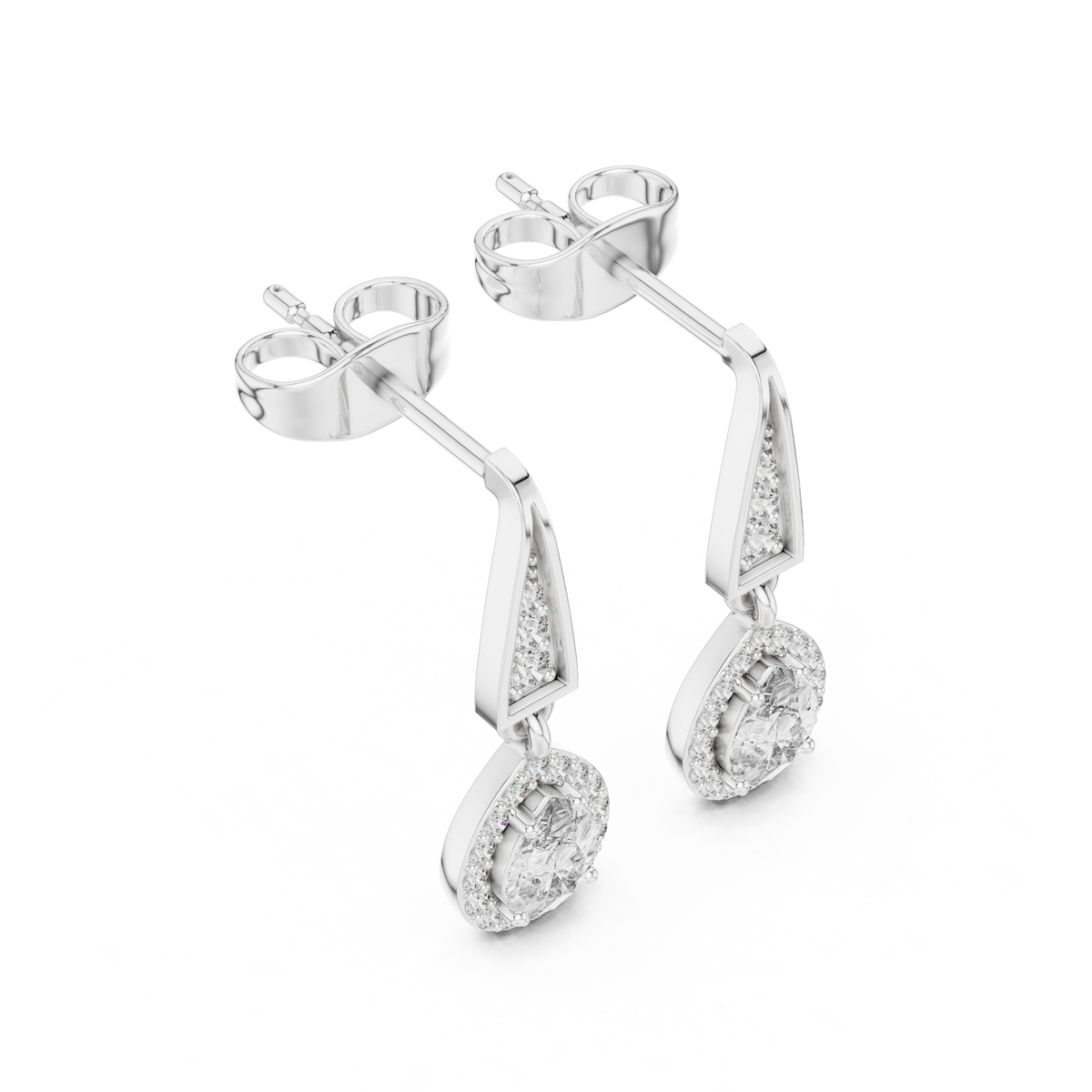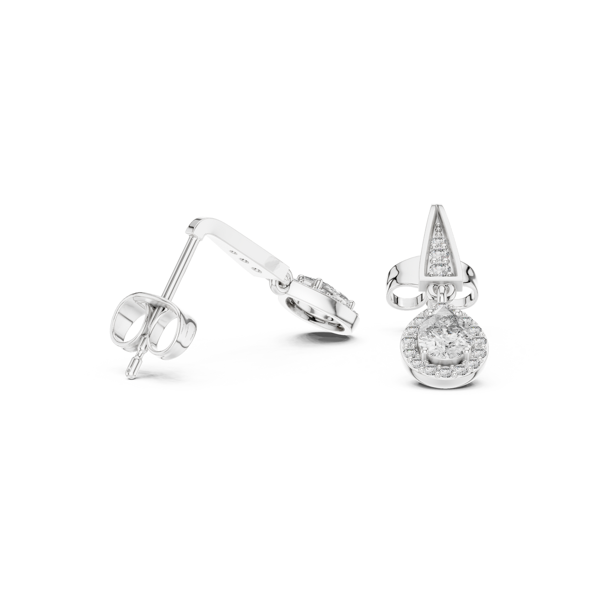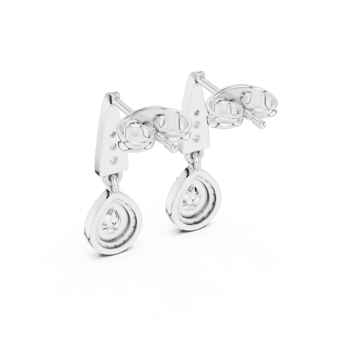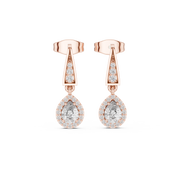 Pear Cut Diamond Halo Drop Earrings with Pavé Tapered Link
