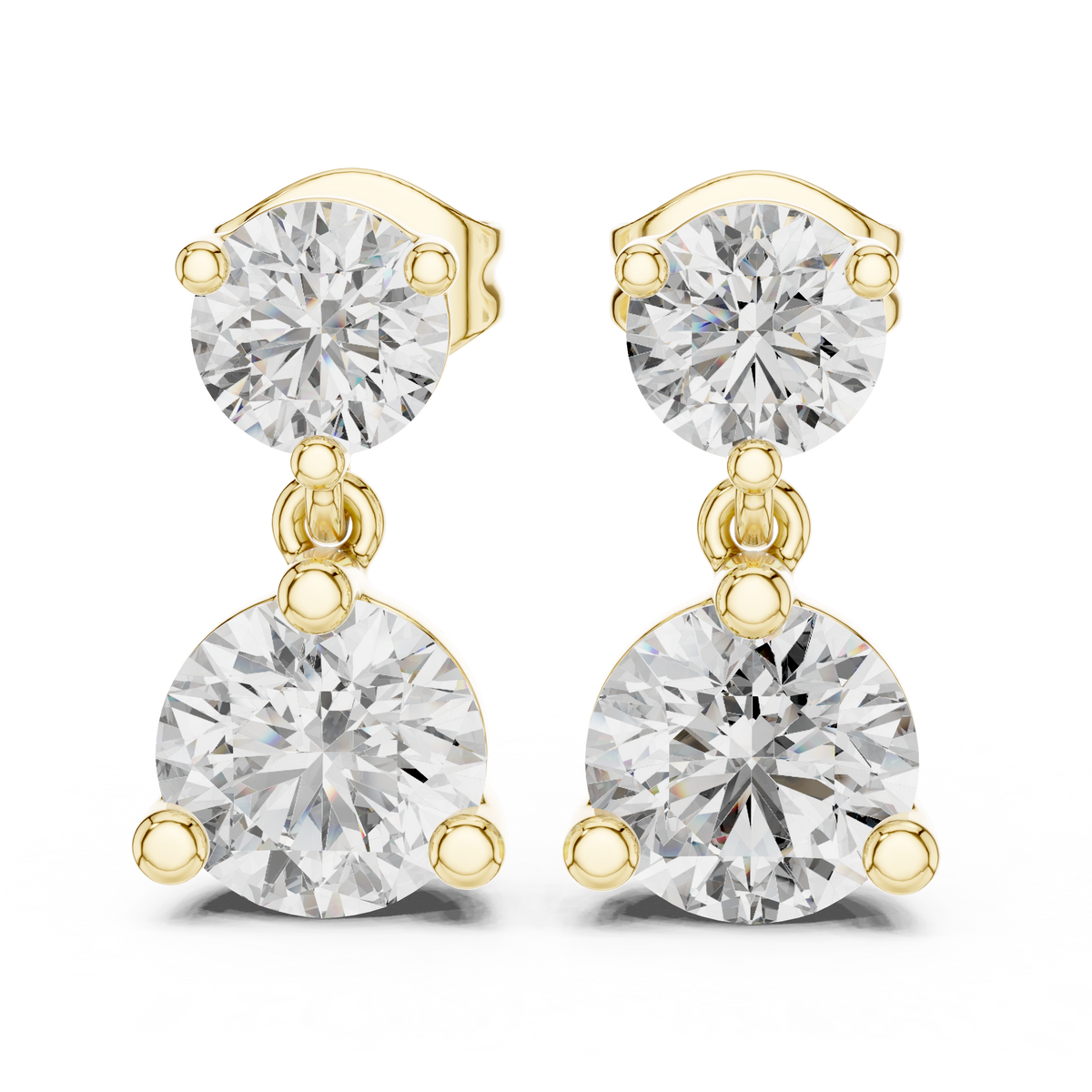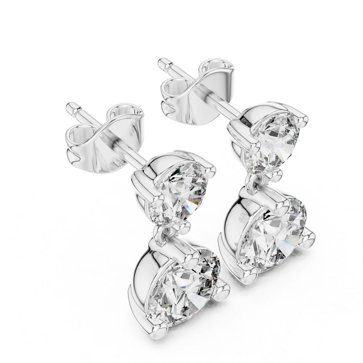 Effortlessly elegant, these earrings combine the classic appeal of diamond studs with the graceful motion of a drop design. The two-stone arrangement enhances sparkle and elongates the profile, making them flattering for both everyday wear and special occasions. Lightweight, secure, and endlessly versatile, they deliver refined luxury and confidence with every look.