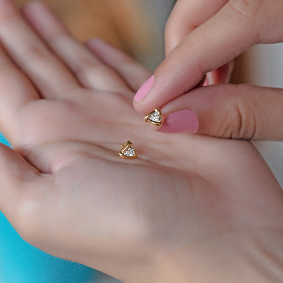 These dazzling Triangle Diamond Stud Earrings are the perfect way to add a touch of sparkle to any outfit! Crafted from gold and diamond, these earrings are sure to become a favorite in your jewellery collection. The bezel setting of the diamonds adds an extra touch of sophistication to the design. Whether you’re looking for something to wear to a special occasion or just to add a little extra glamour to your everyday look, these earrings are sure to make a statement. Friendly and dazzling, these diamond and gold earrings are sure to turn heads!