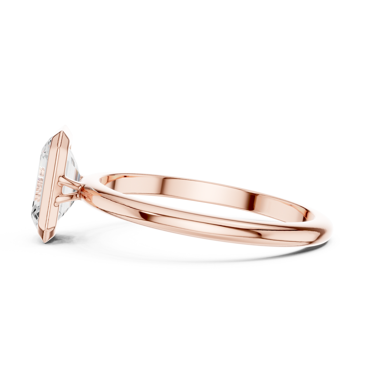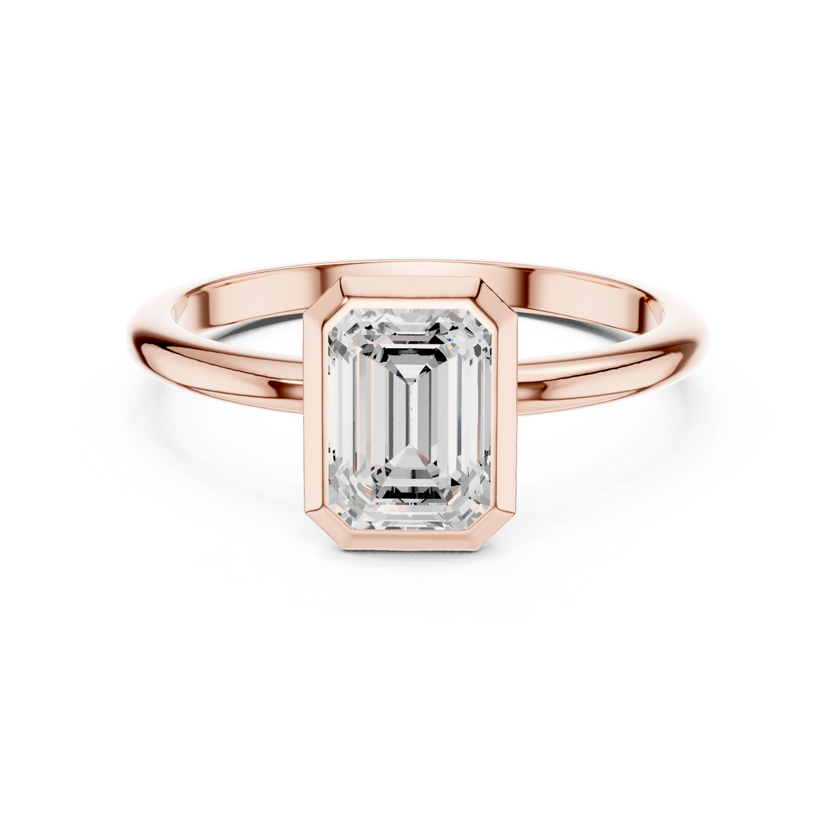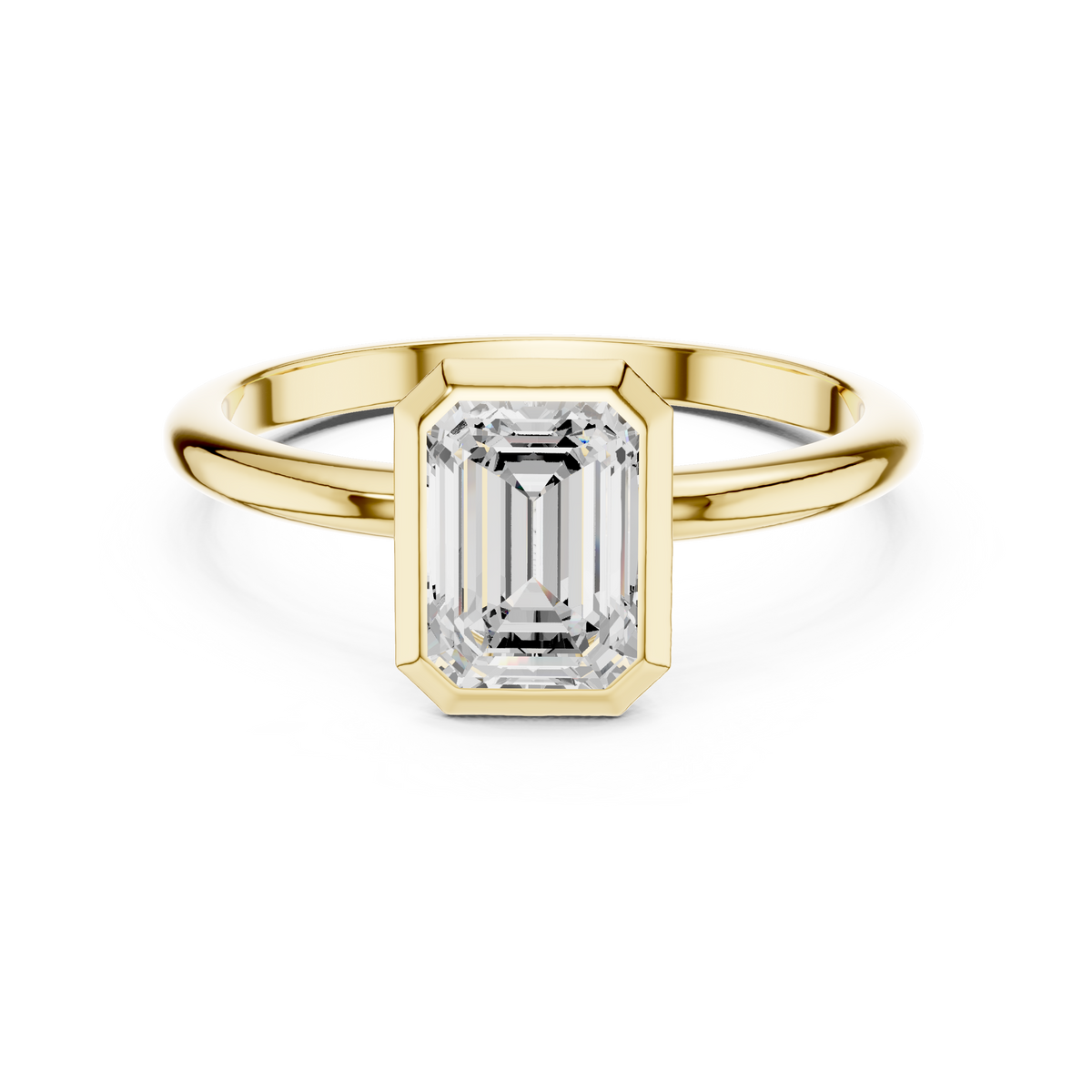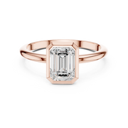 This emerald cut bezel solitaire ring offers a refined balance of minimalism and sophistication. The bezel setting provides a sleek modern look while also offering enhanced protection for the center diamond, making it ideal for everyday wear.