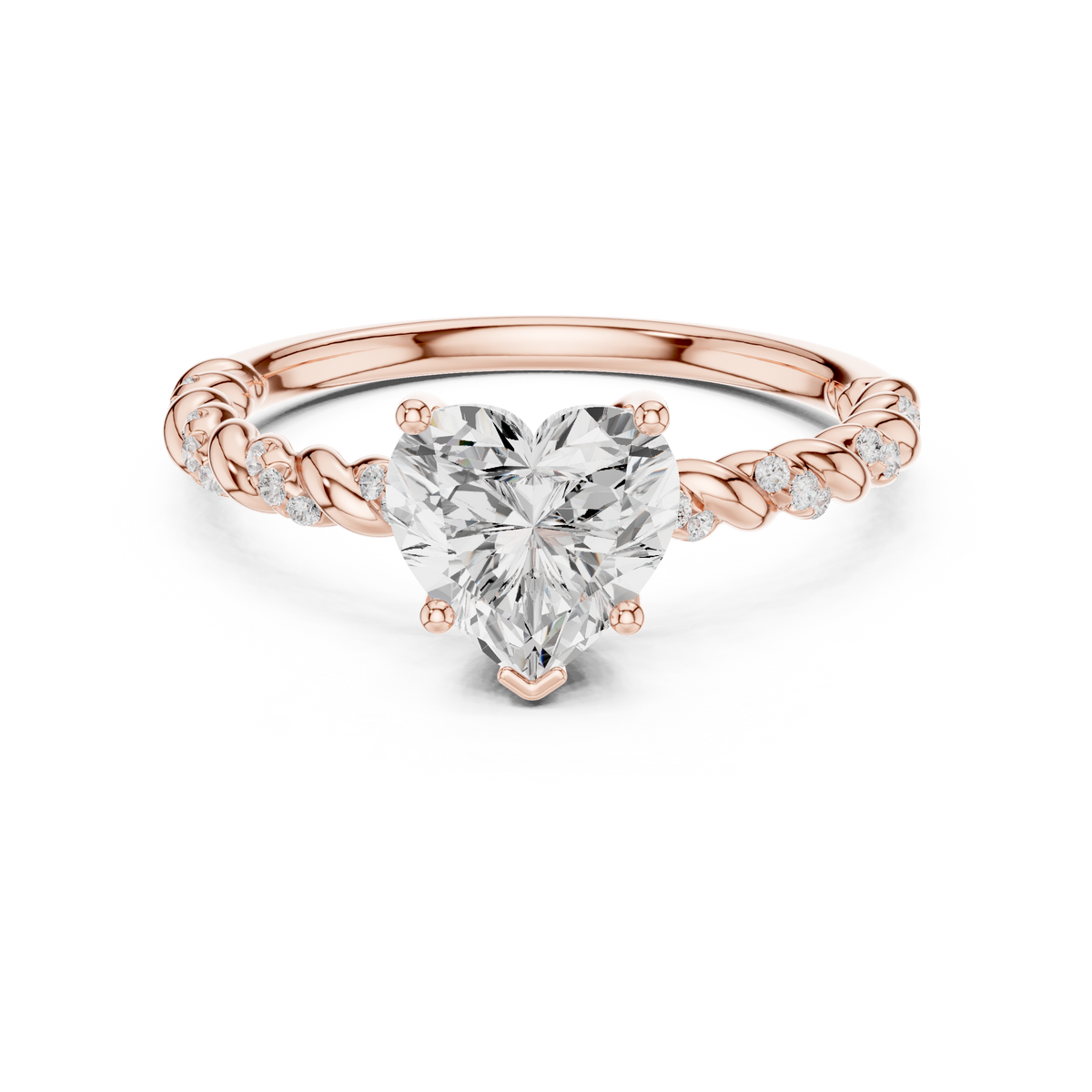 This heart-shaped diamond ring symbolizes love and devotion, making it a meaningful choice for engagements or special milestones. The twisted diamond-accented band adds elegance and dimension, enhancing its romantic appeal.
