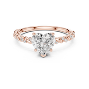 This romantic diamond ring features a captivating heart cut center stone, beautifully secured in a refined collet setting. The heart-shaped diamond delivers brilliant sparkle through its symmetrical curves and precisely faceted surface, creating exceptional light reflection and depth.