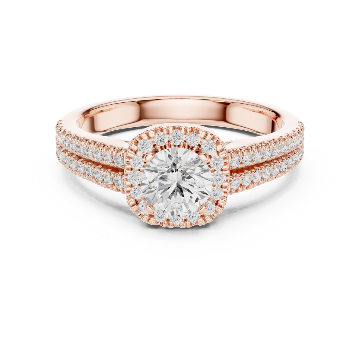 Round Brilliant Diamond Halo Split Shank Engagement Ring