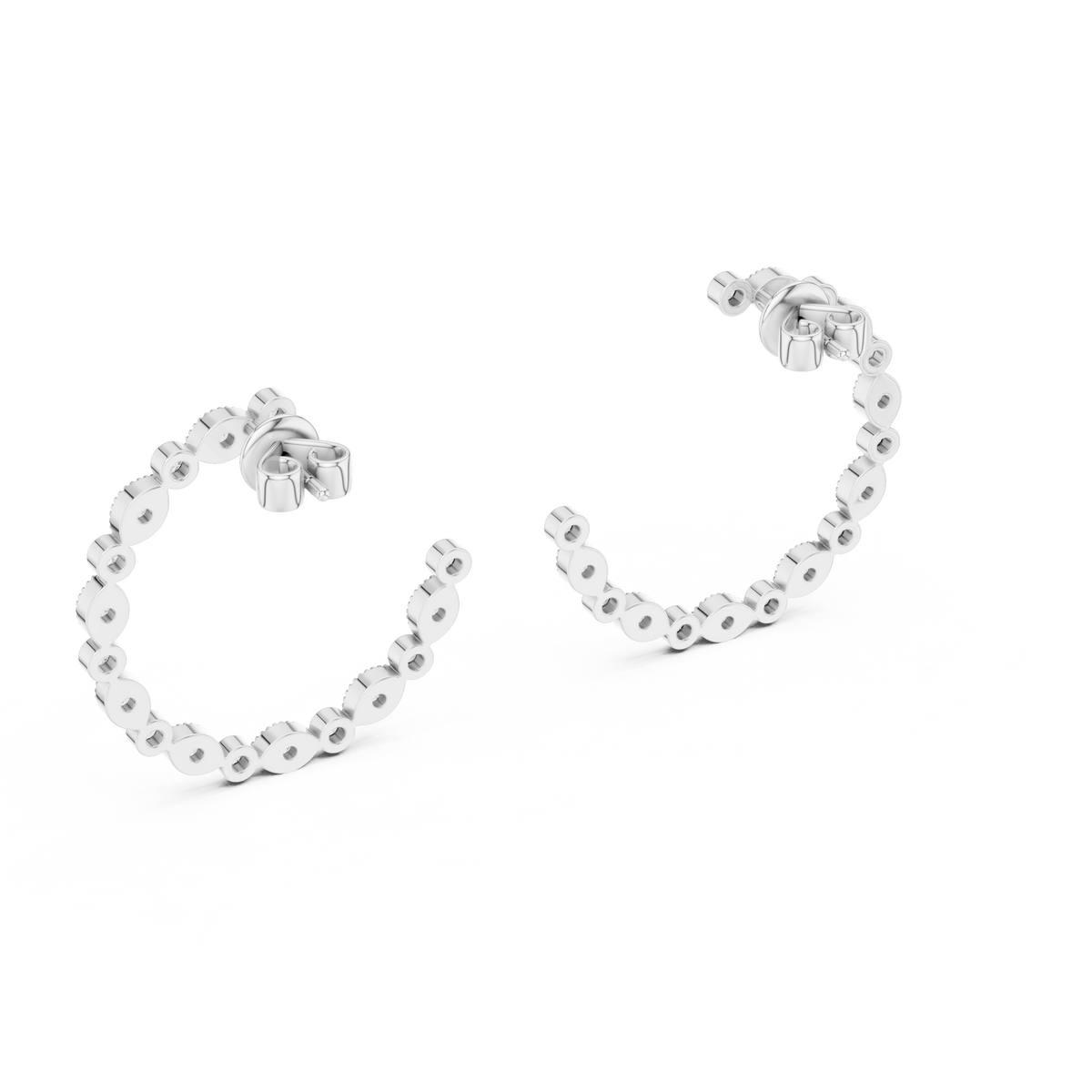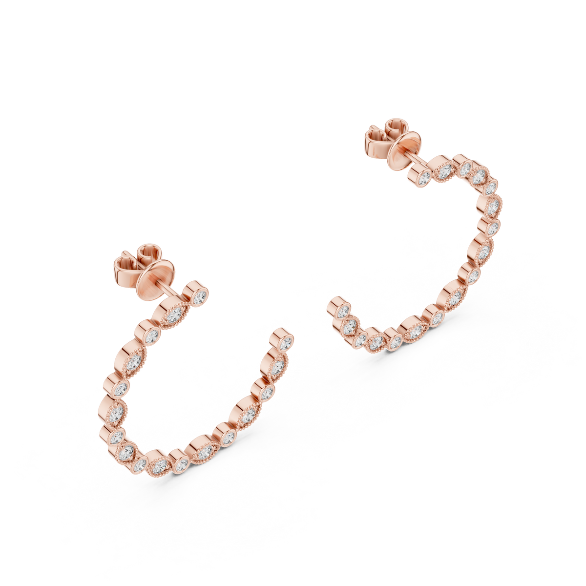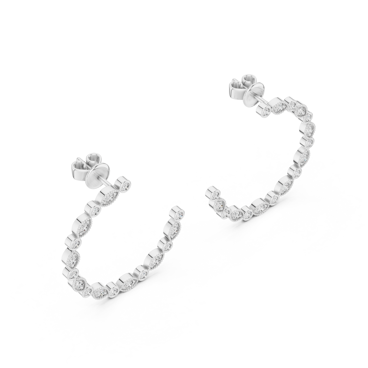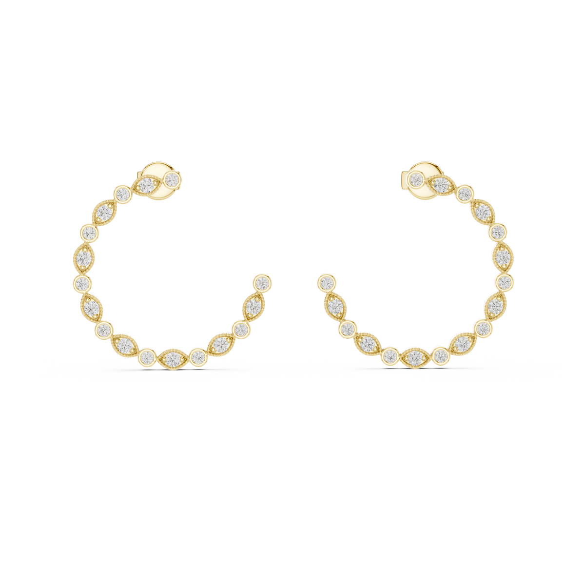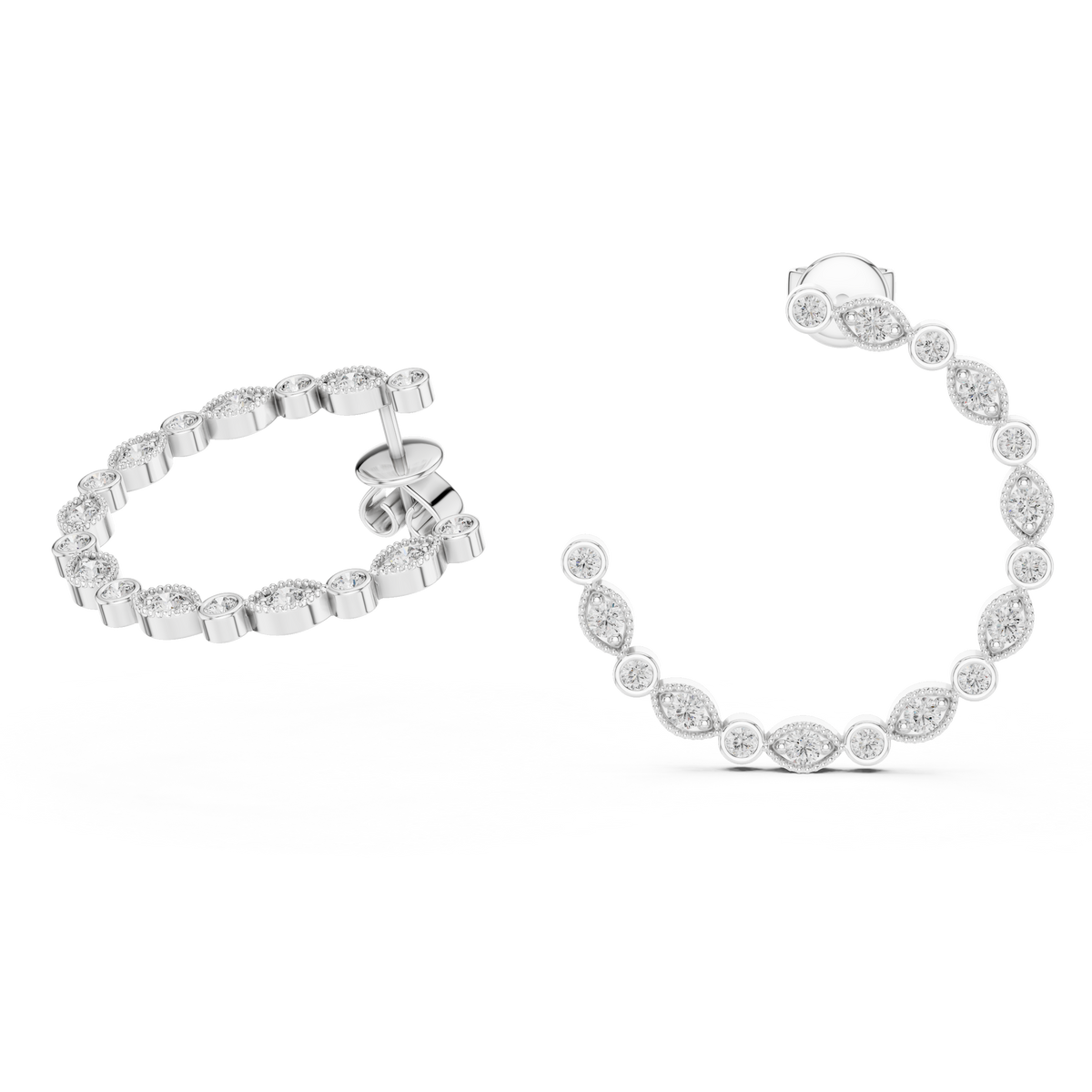 Alternating Marquise and Round Diamond Open Hoop Earrings