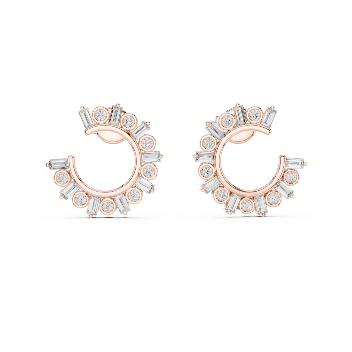 Mixed Cut Diamond Open Hoop Earrings with Radiant Arc Design