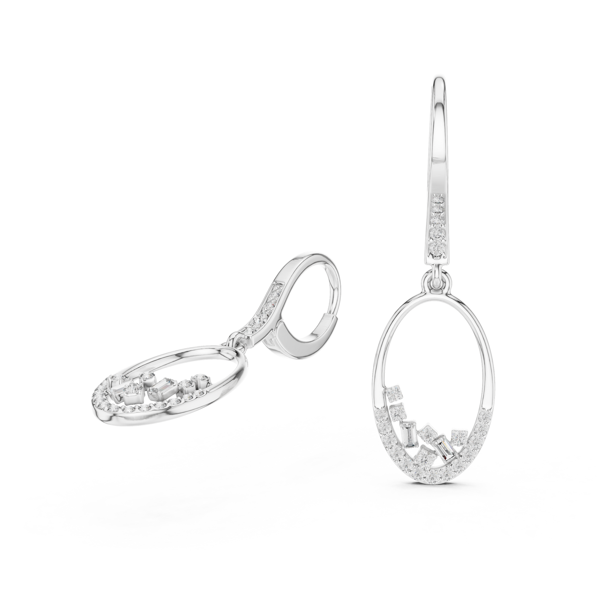 Oval Pavé Diamond Drop Earrings with Baguette Accents