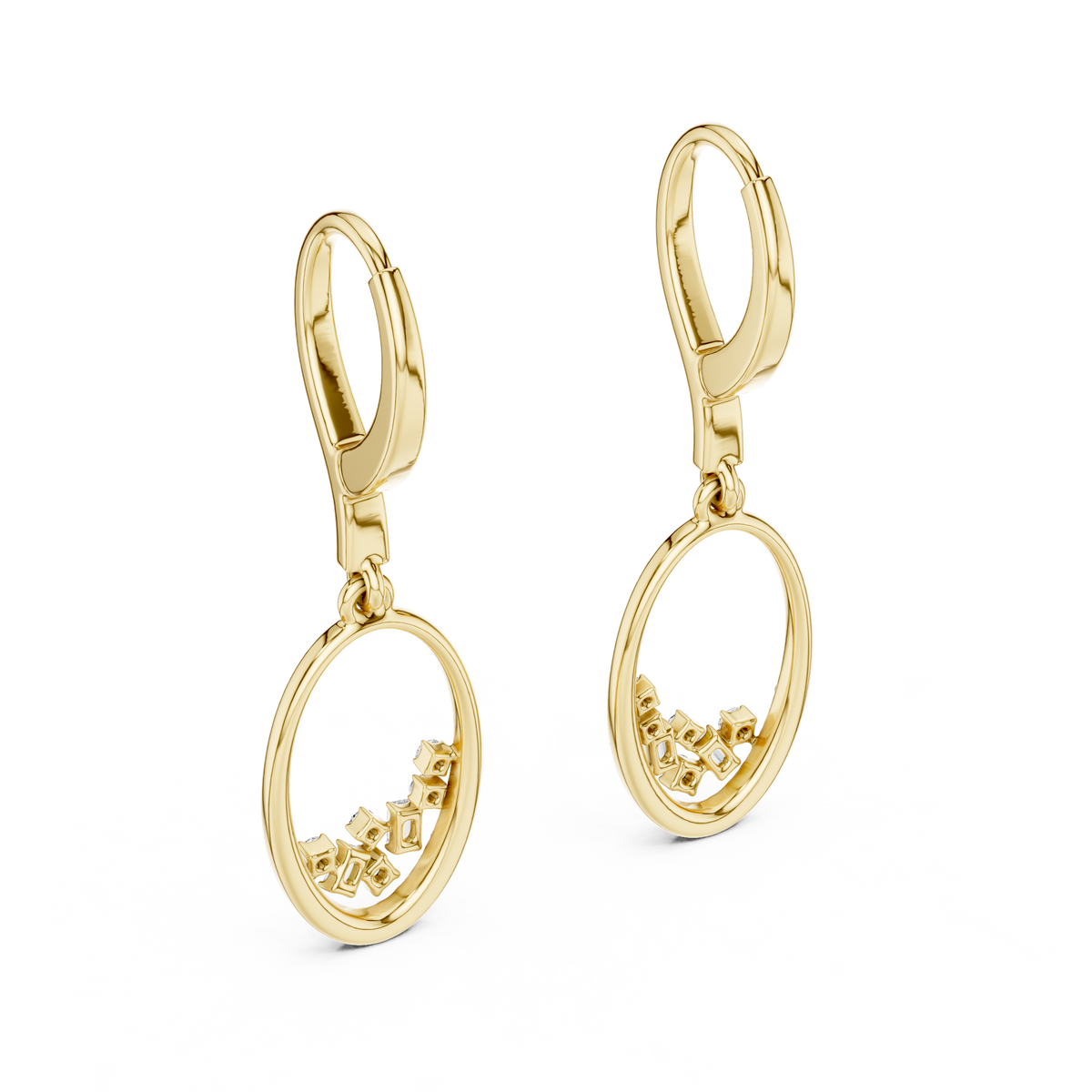 Oval Pavé Diamond Drop Earrings with Baguette Accents - 10K / VS