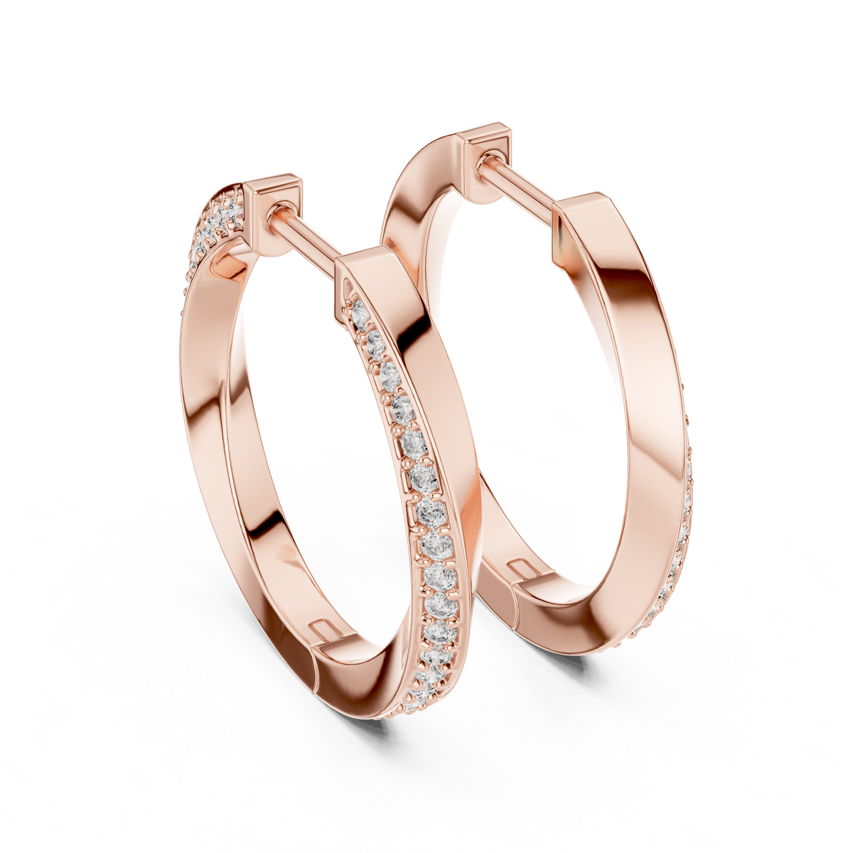 Pavé Set Round Diamond Slim Huggie Hoop Earrings