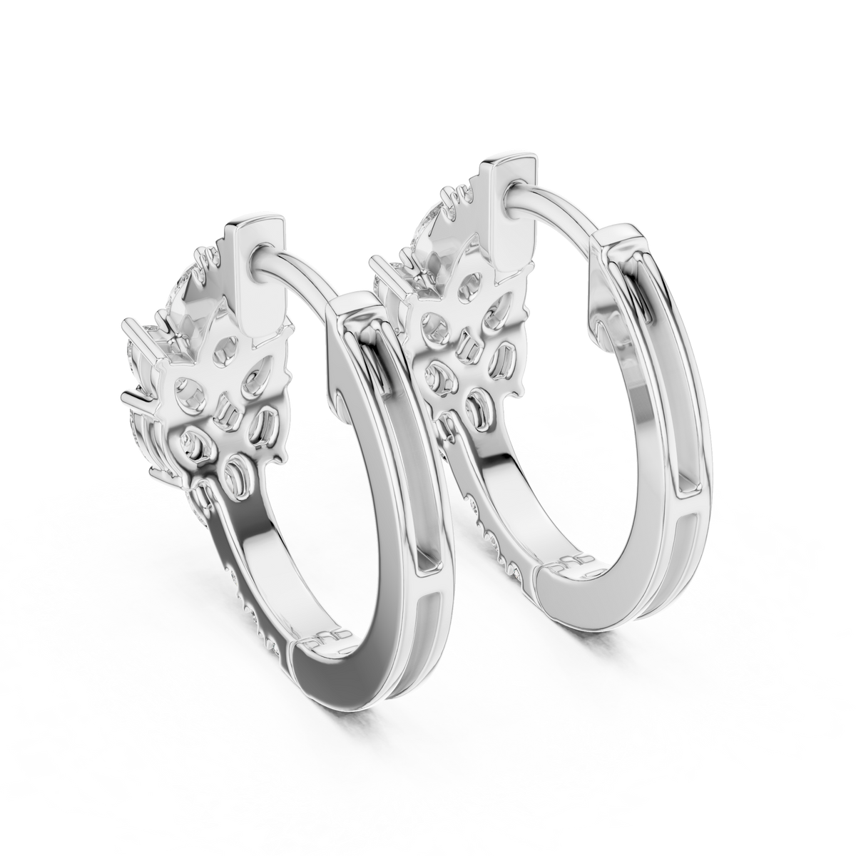 Designed to elevate everyday elegance, these earrings offer a graceful blend of floral charm and modern sophistication. Their comfortable huggie fit ensures secure wear, while the timeless diamond arrangement makes them perfect for celebrations, gifting, or refined daily luxury.