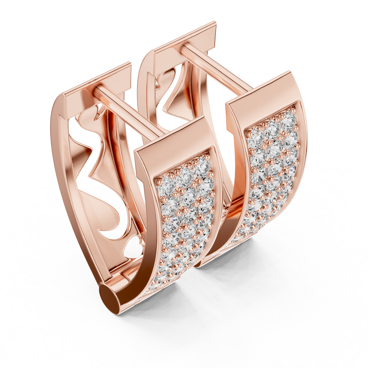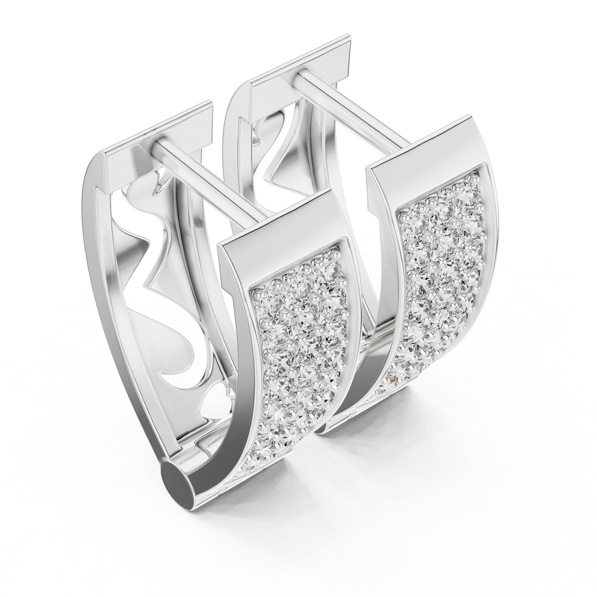 Round Cut Diamond Pavé Huggie Hoop Earrings with Rectangular Frame