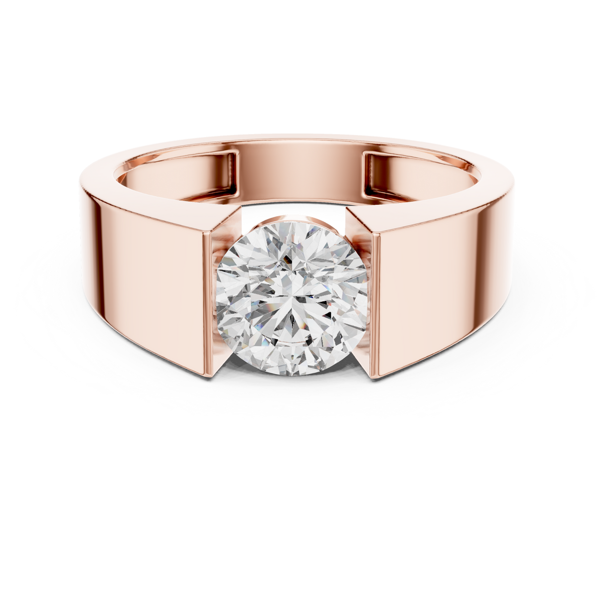 Round Cut Diamond Signet Solitaire Ring
