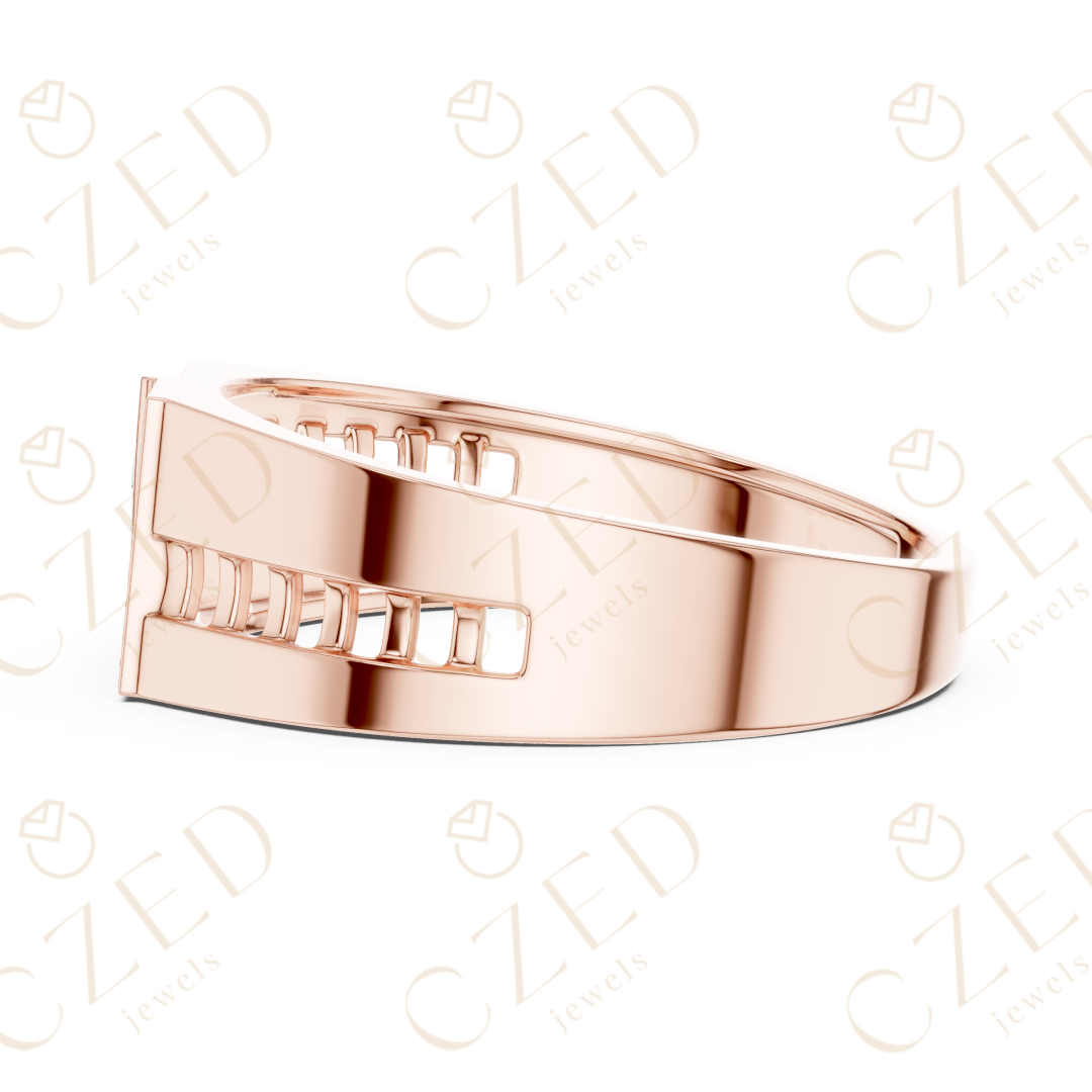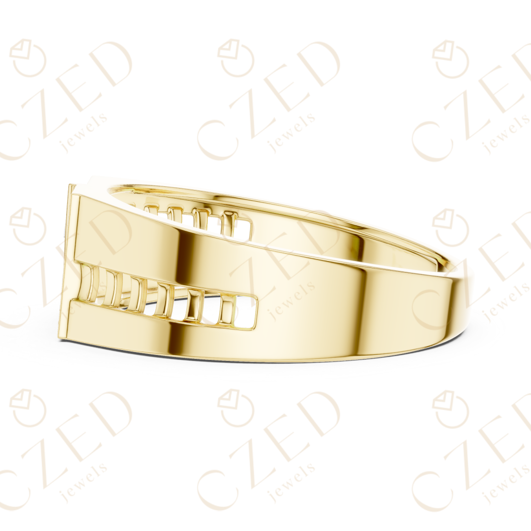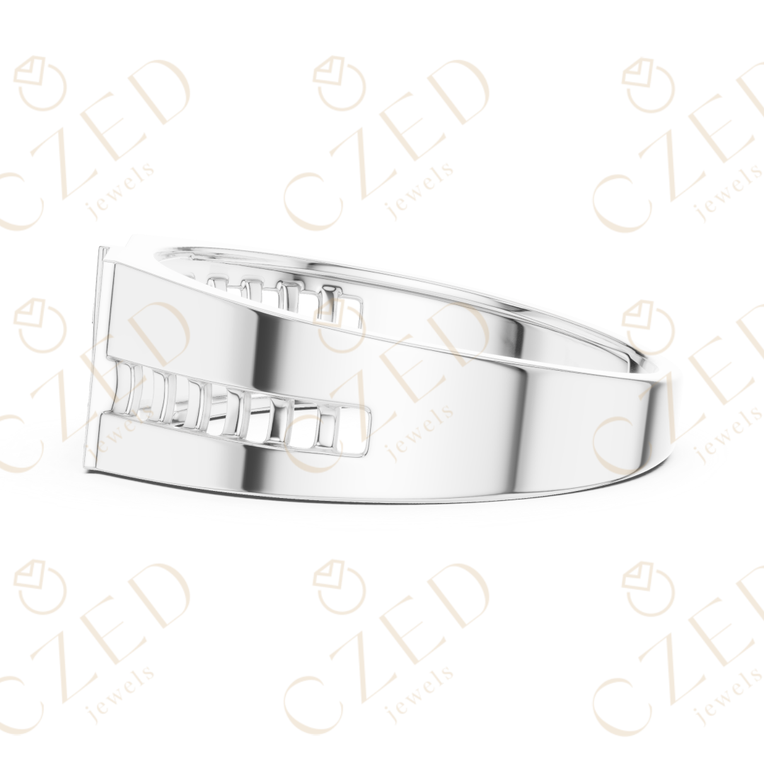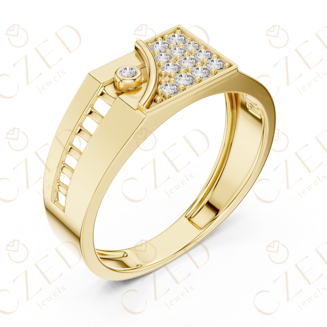 Round Brilliant Diamond Geometric Panel Pavé Band Ring - 10K / VS