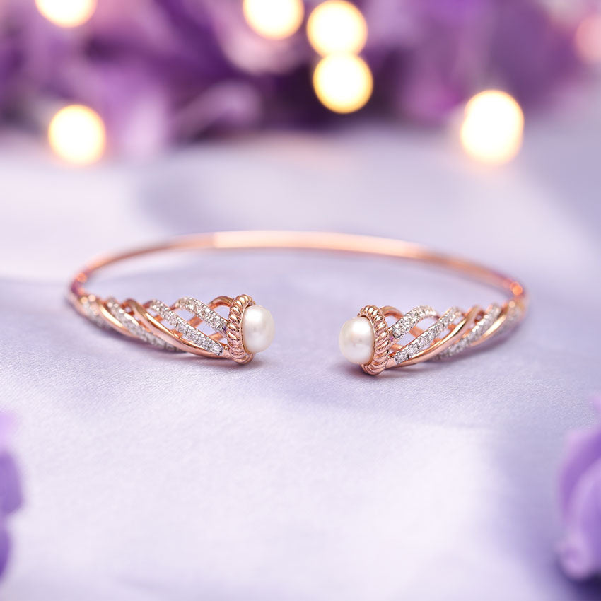 The Citali Pearl Bracelet is a masterpiece crafted in Rose Gold, accentuating the timeless elegance of pearls with the sparkling brilliance of diamonds. This exquisite piece elegantly intertwines classic charm with contemporary design, creating a sophisticated accessory perfect for any occasion. Its design showcases a row of lustrous pearls, each complemented by a delicate touch of diamonds, offering a perfect blend of luxury and grace. Ideal for those who cherish the understated beauty of pearls.