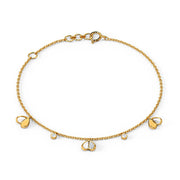 The Joyous Hearts Diamond Bracelet is a celebration of love, expertly crafted from beautiful gold and adorned with sparkling diamonds. Featuring a series of delicate and playful dangling hearts, this bracelet adds a whimsical charm to any look. The luxurious combination of yellow gold and diamonds creates a sophisticated yet fun accessory, ideal for romantic occasions or as a heartfelt gift to symbolize joy and affection.