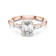 - Diamond Shape & Cut: Emerald cut center with baguette cut side stones