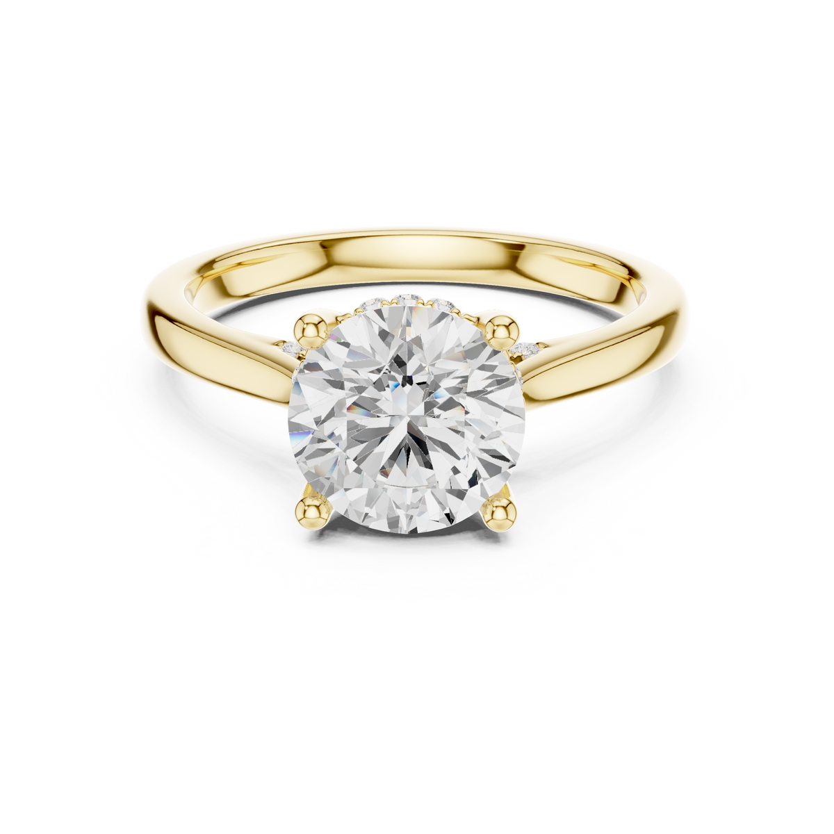 This round diamond solitaire ring embodies timeless elegance while incorporating subtle hidden sparkle that elevates the classic design. The brilliant center stone creates a striking focal point, while the hidden diamonds add refined brilliance visible from every angle.