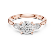 This three stone ring represents meaningful moments and lasting commitment. The classic round center diamond is beautifully complemented by pear-shaped side stones, creating a design that feels both timeless and distinctive. Crafted with lab-grown diamonds, it offers an ethical choice with exceptional beauty, perfect for engagements, weddings, and anniversaries.