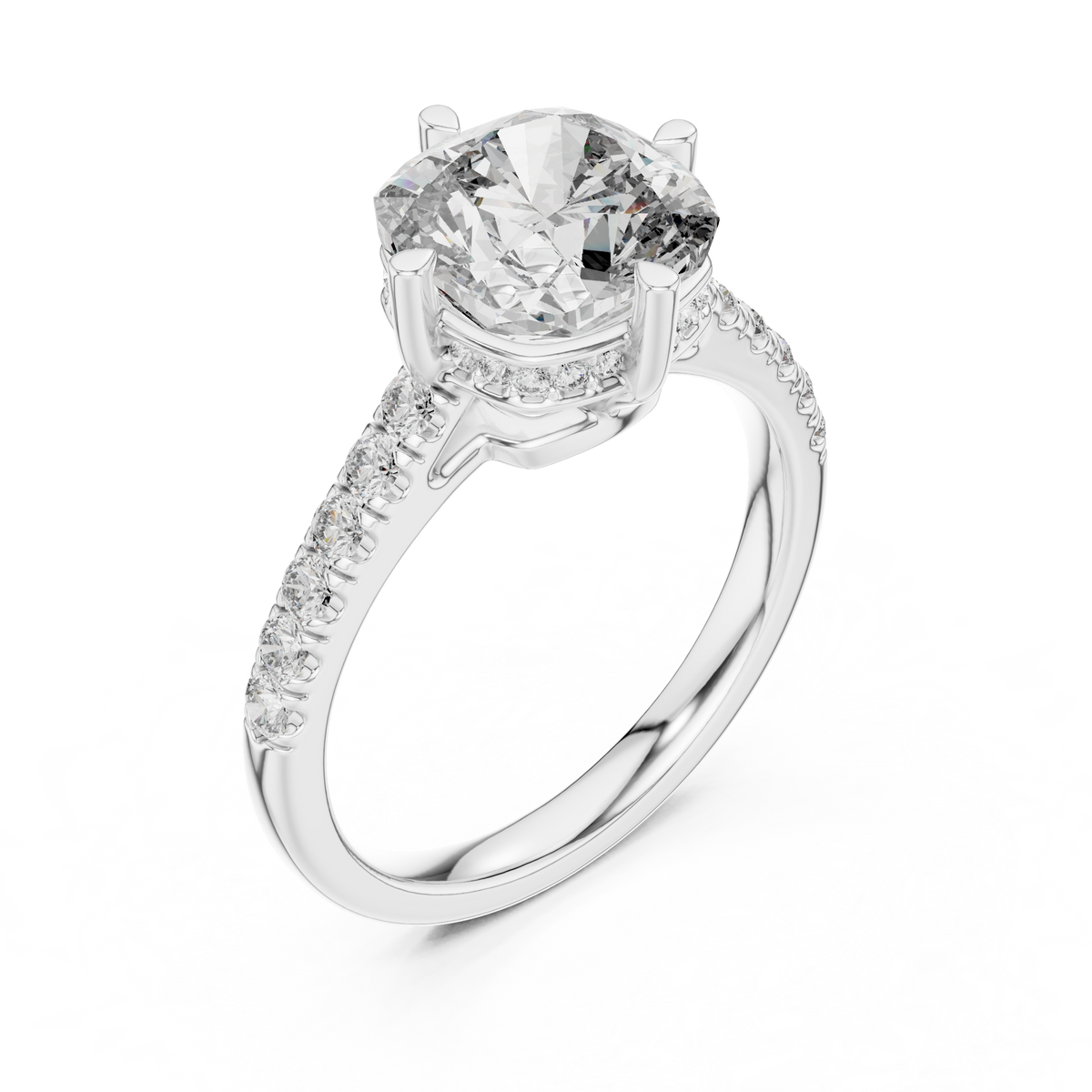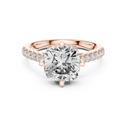Cushion Cut Diamond Solitaire Engagement Ring with Pavé Band