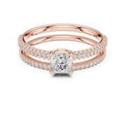 This design blends timeless elegance with modern sophistication, making it perfect for engagements, anniversaries, and meaningful milestones. The radiant cushion center and shimmering pavé band symbolize enduring love, while lab-grown diamonds offer a responsible and ethical luxury. Comfortable for everyday wear yet striking enough for special occasions, it’s a ring you’ll cherish for a lifetime.