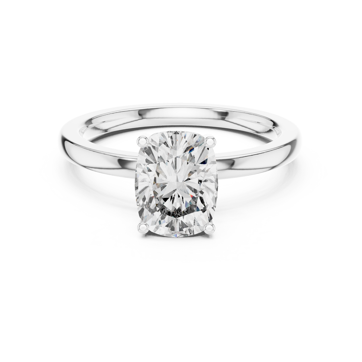 Cushion Cut Solitaire Diamond Ring with Hidden Halo Detail