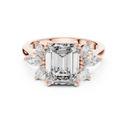 Emerald Cut Diamond Floral Side Stone Engagement Ring