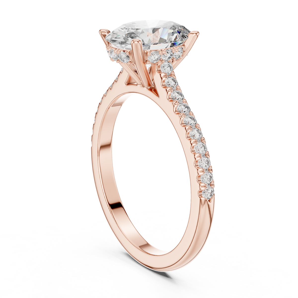 Oval Cut Diamond Pavé Band Solitaire Engagement Ring