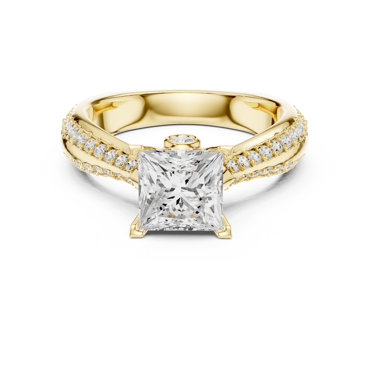 This ring captures the essence of modern romance with its bold princess cut center and shimmering pavé accents. Lab-grown diamonds offer the same brilliance and durability as mined diamonds while providing an ethical and environmentally responsible choice. Designed for everyday comfort and lasting beauty, this piece transitions effortlessly from proposal moment to lifelong celebration. Its timeless design makes it perfect for engagements, weddings, anniversaries, and meaningful milestones.