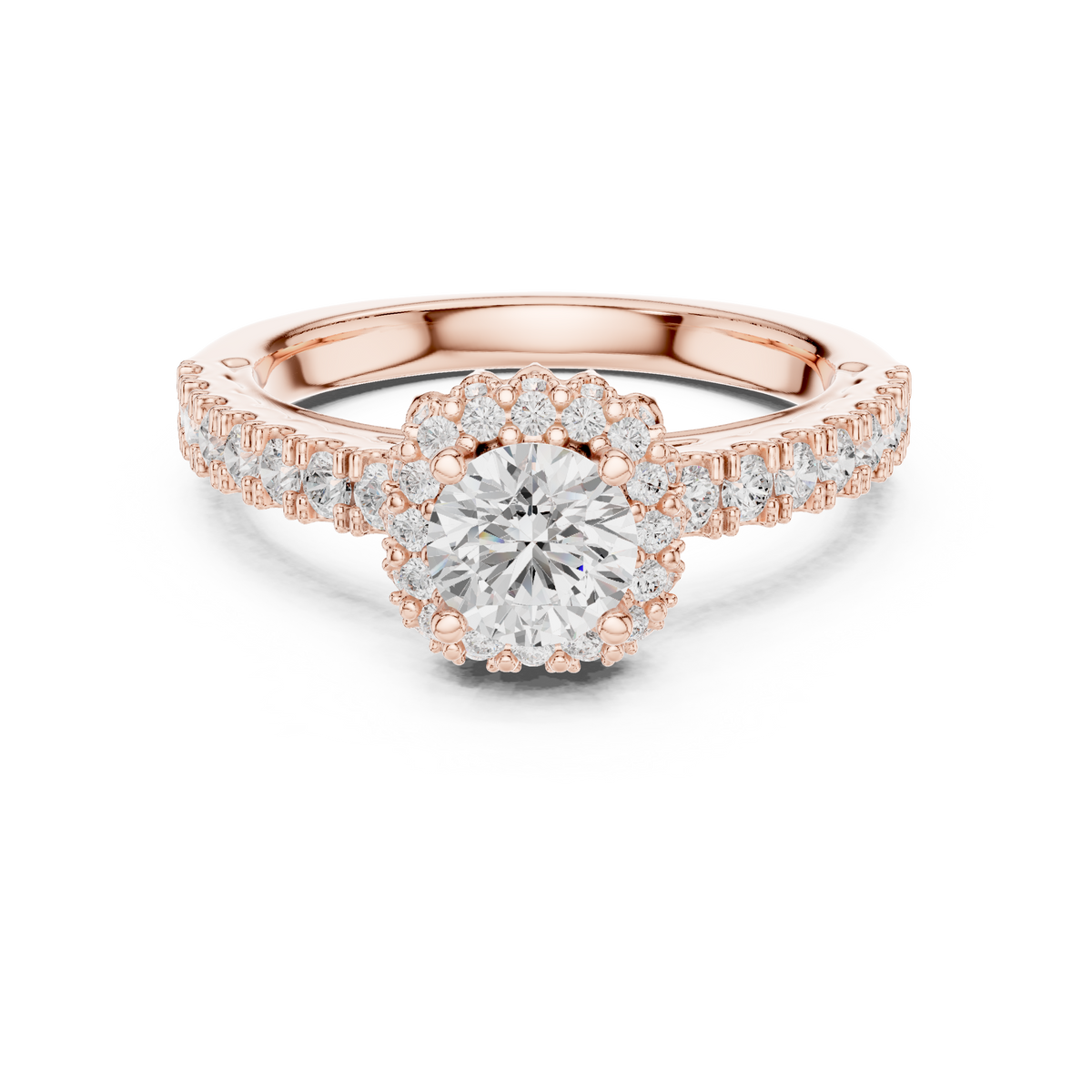 Round Brilliant Diamond Halo Engagement Ring with Pavé Side Stones Luxe Cluster