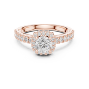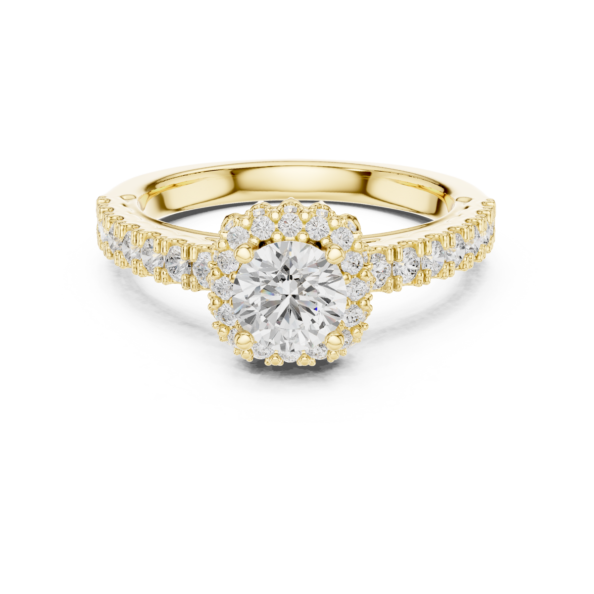 Round Brilliant Diamond Halo Engagement Ring with Pavé Side Stones Luxe Cluster - 10K / VS