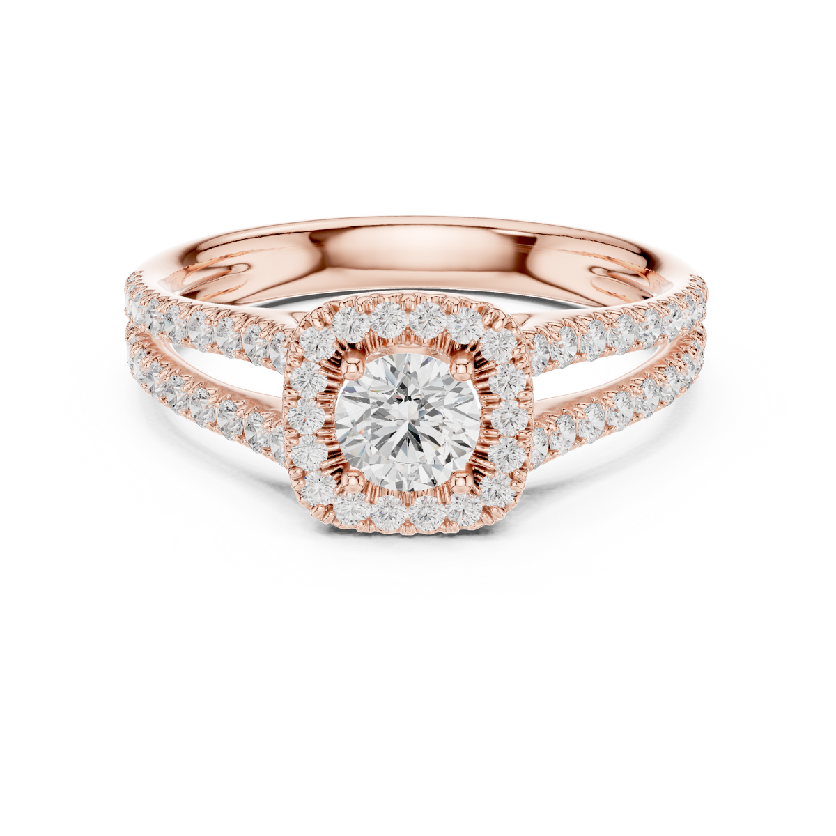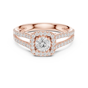 Round Brilliant Diamond Halo Engagement Ring with Split Shank Pavé Band