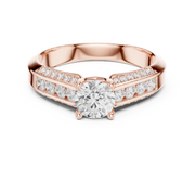 - Side stones: Pavé-set round diamonds along halo and split shank shoulders