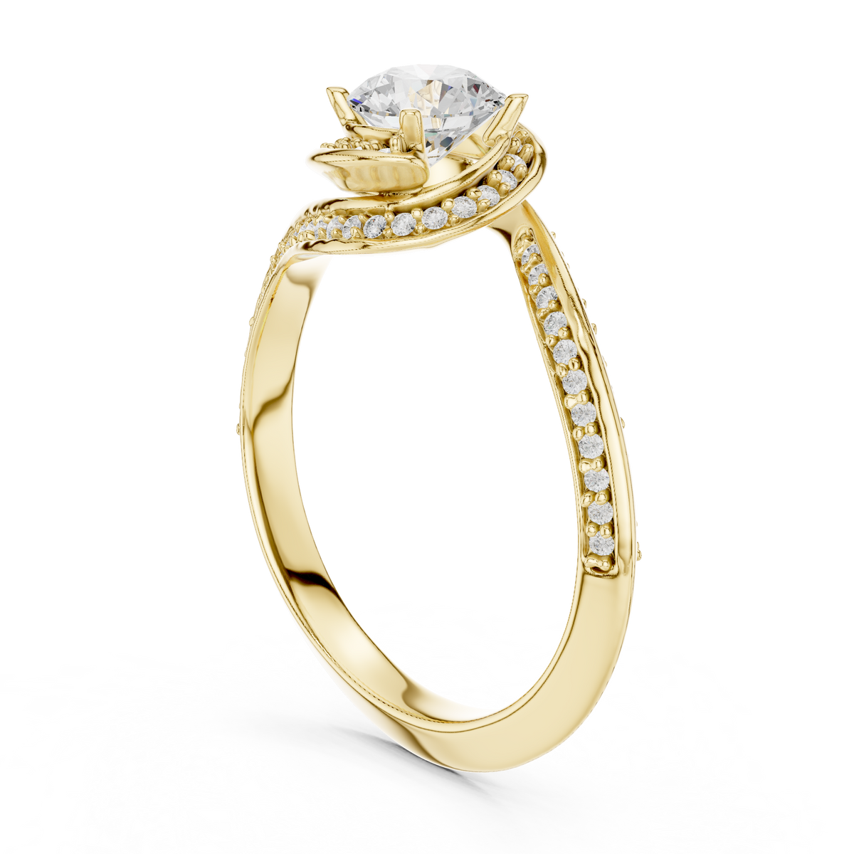 Round Brilliant Diamond Halo Split Shank Engagement Ring - 10K / VS