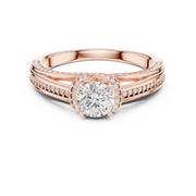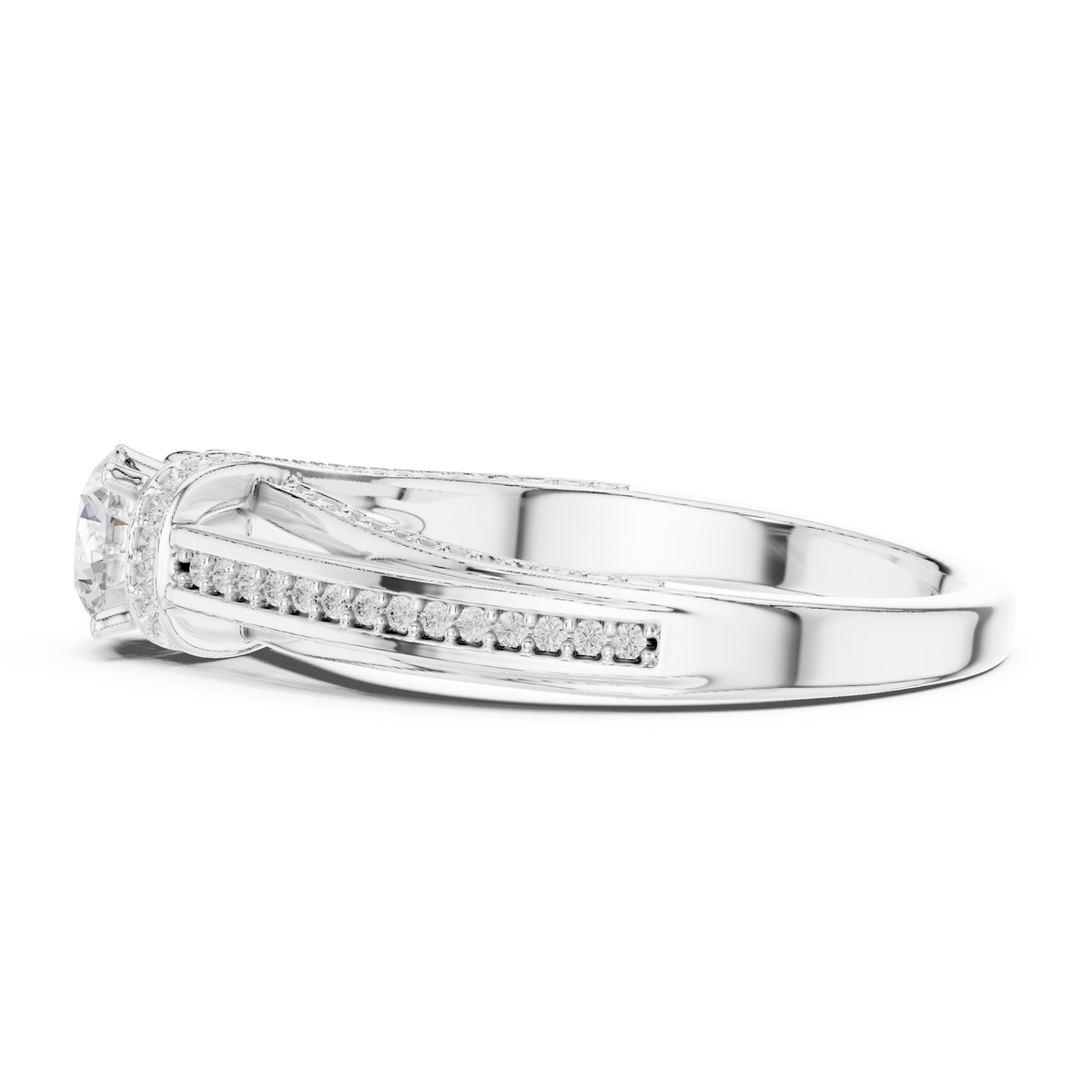 Round Brilliant Diamond Pavé Split Shank Side Stone Engagement Ring - 10K / VS