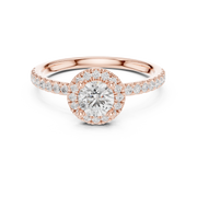 Round Brilliant Lab Diamond Halo Engagement Ring with Pavé Band