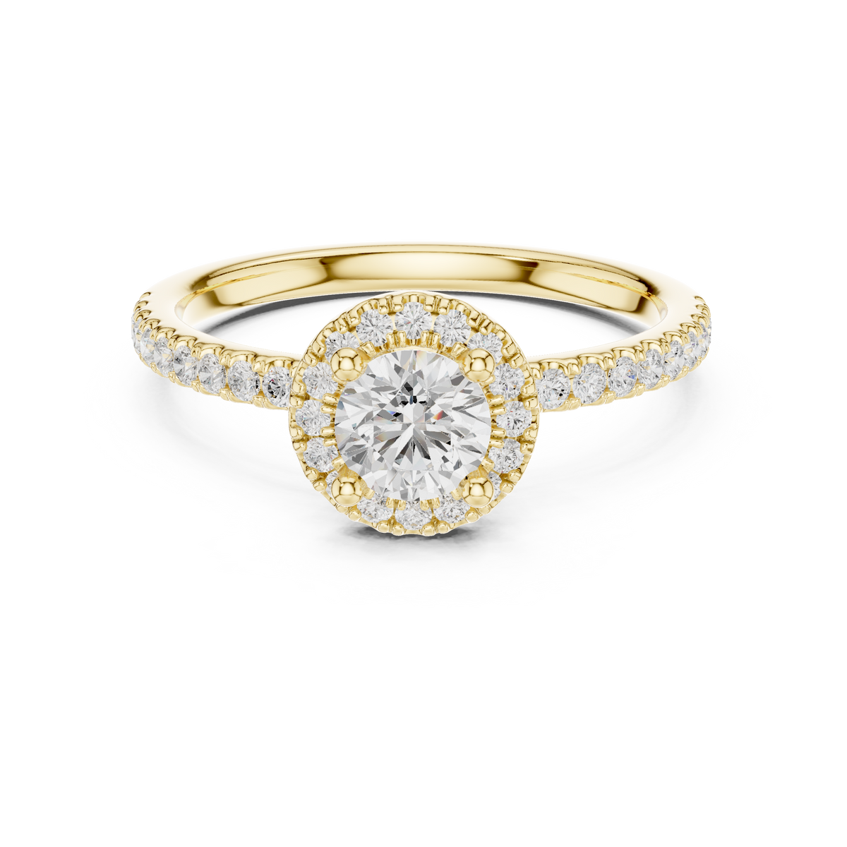 Round Brilliant Lab Diamond Halo Engagement Ring with Pavé Band - 10K / VS