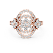 This ring blends modern artistry with timeless diamond elegance. The layered halo design creates a powerful visual impact while remaining graceful and wearable, making it ideal for meaningful celebrations and refined everyday luxury.