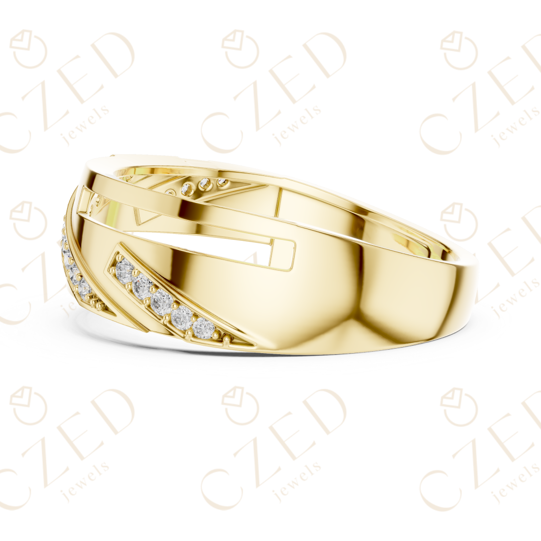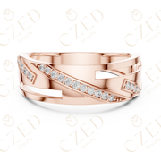 Round Cut Diamond Pavé Diagonal Openwork Band Ring