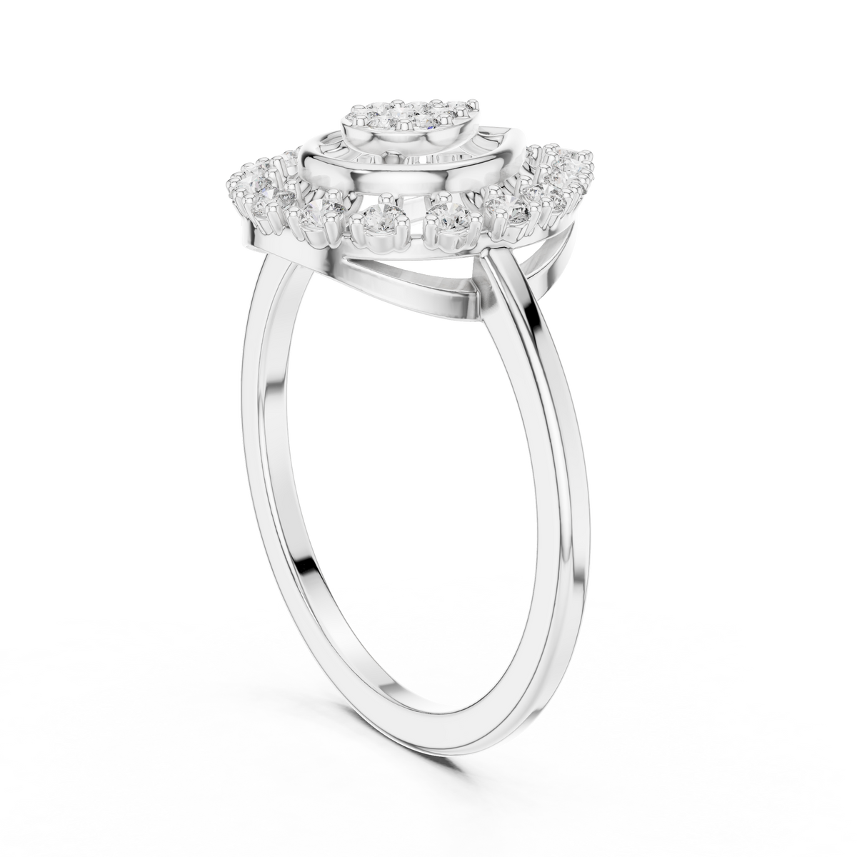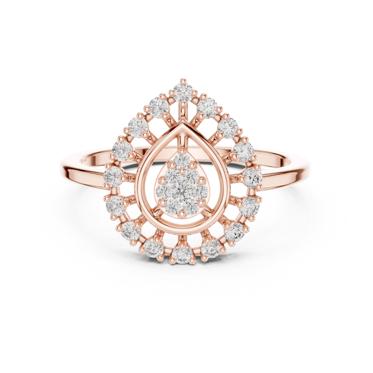 Round Cut Diamond Teardrop Halo Ring