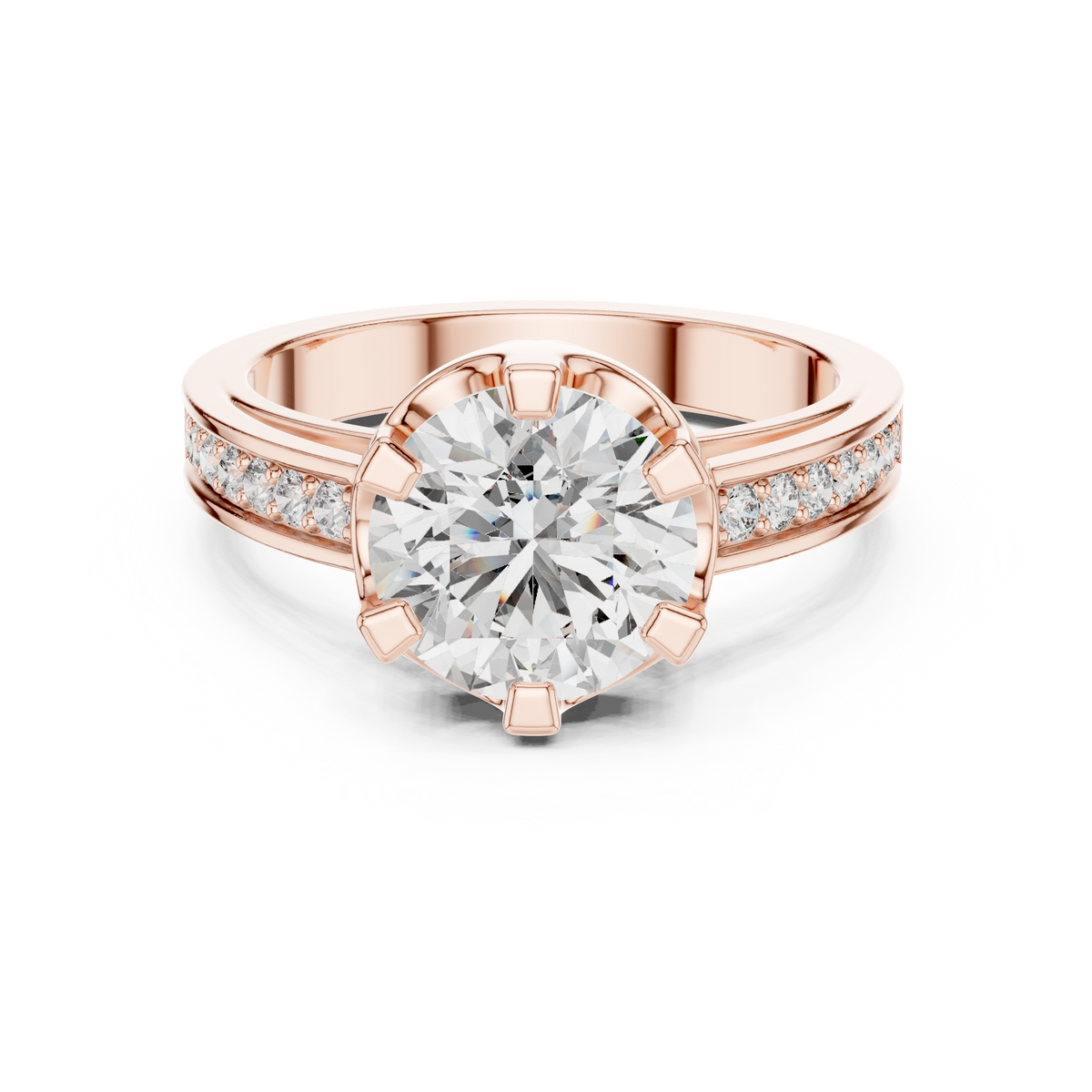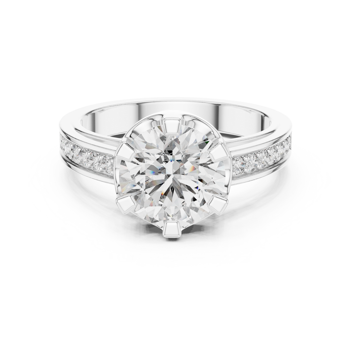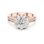 Round Cut Solitaire Diamond Ring with Pavé Side Stone Band