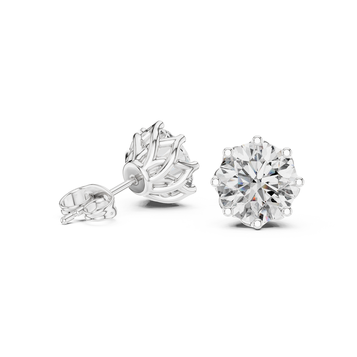 These refined stud earrings showcase a timeless solitaire design featuring round brilliant cut diamonds set in a classic crown-style prong setting. Each stone is elevated to allow maximum light reflection, creating exceptional brilliance and fire. The perfectly symmetrical silhouette and clean lines offer a polished, minimalist look that transitions effortlessly from everyday elegance to formal occasions.