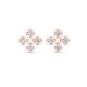 These refined stud earrings showcase a bold geometric cross silhouette accented with a brilliant cluster of round cut diamonds. Each earring is crafted with clean architectural lines and a symmetrical layout, creating depth, dimension, and balanced sparkle. The diamond arrangement forms a radiant floral-like cluster at the center, while the structured frame enhances brilliance with a polished finish. Designed for timeless elegance, the studs sit comfortably and securely on the ear for effortless everyday luxury.
