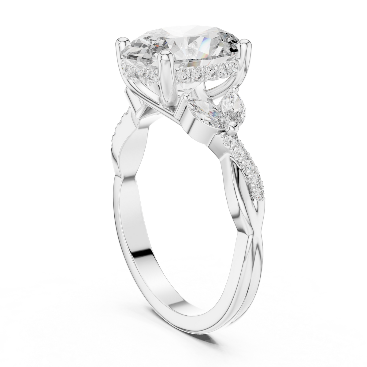Oval Cut Three Stone Diamond Engagement Ring with Marquise Side Stones