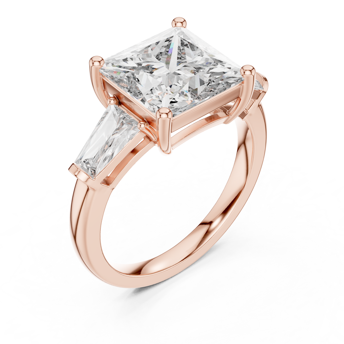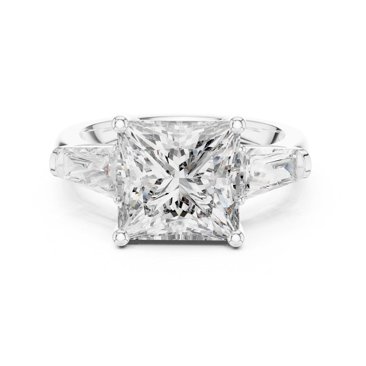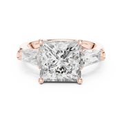 Princess Cut Three Stone Diamond Engagement Ring with Tapered Side Diamonds