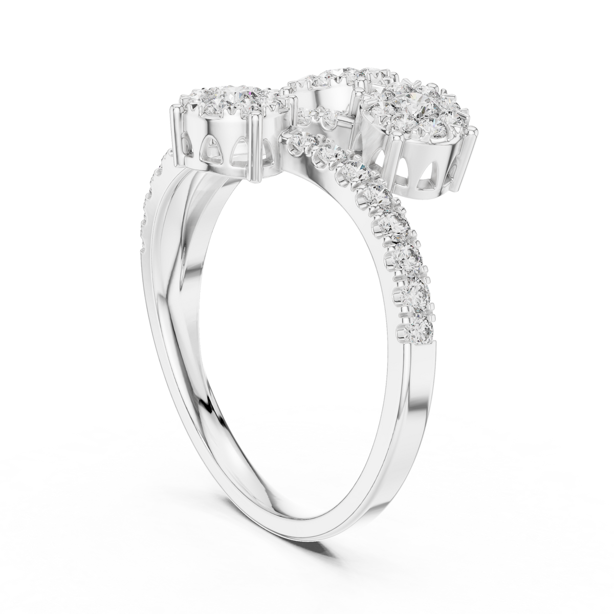 This three stone floral cluster ring symbolizes meaningful moments while offering a bold yet graceful design. The flowing twist silhouette enhances comfort and visual interest, while lab-grown diamonds provide an ethical and sustainable choice without compromising brilliance. Perfect for weddings, anniversaries, or elegant everyday wear.