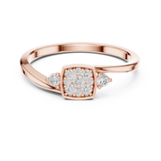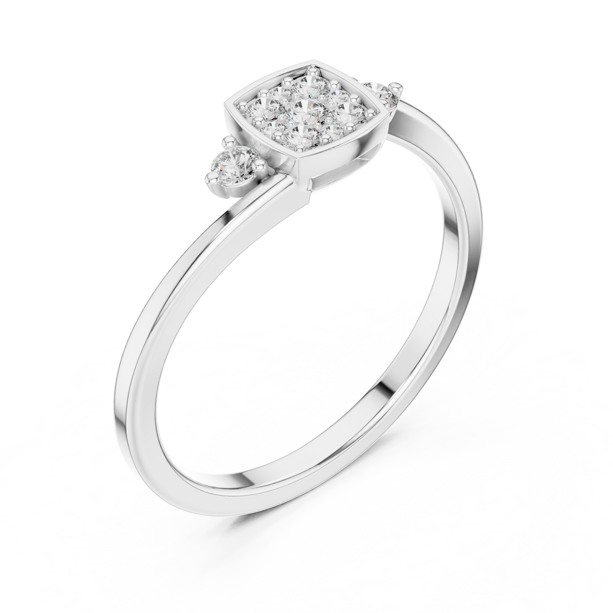 Round Cut Square Cluster Three Stone Diamond Ring - 10K / VS