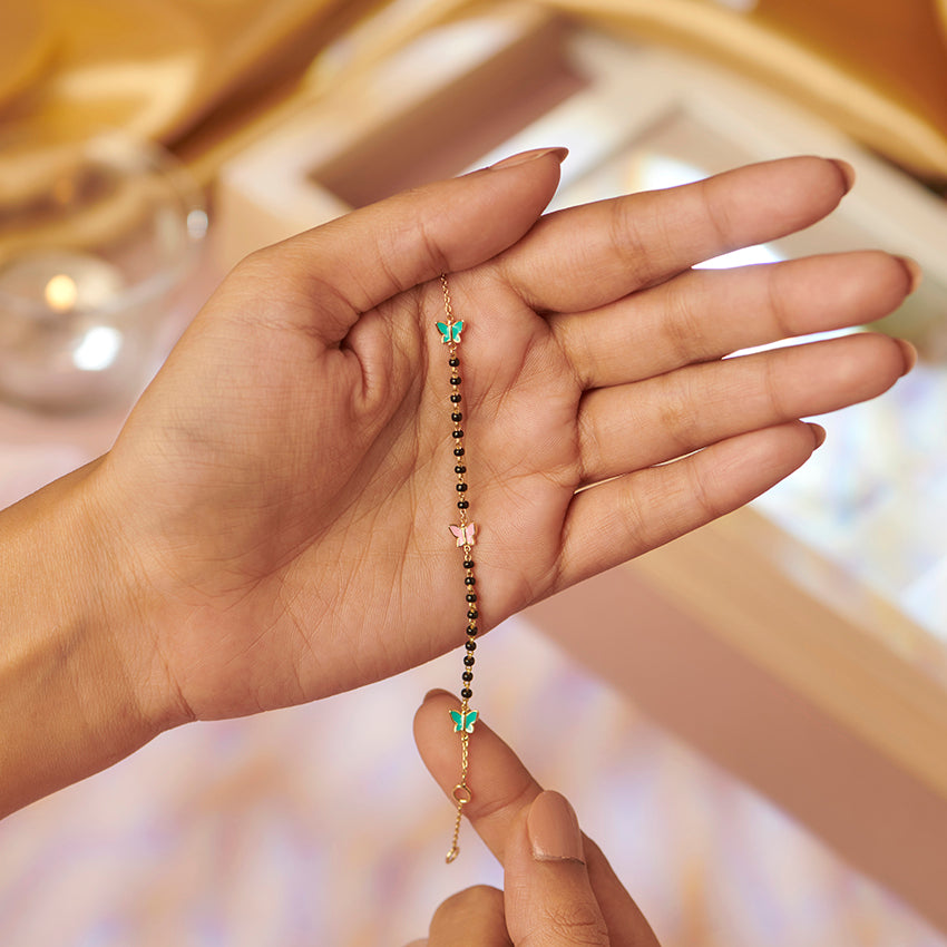 Delicate and enchanting, the Butterflies Baby Nazaria Gold Bracelet by CzedJewels is a true celebration of innocence and beauty. This adorable piece features a dainty gold chain adorned with butterfly-shaped charms, creating a whimsical and playful look. Crafted with meticulous attention to detail, this bracelet becomes a cherished keepsake. The adjustable length ensures a comfortable fit for your little one's wrist. Whether worn as a symbol of love or as a fashion statement, it adds a touch of sweetness and charm to any outfit.
